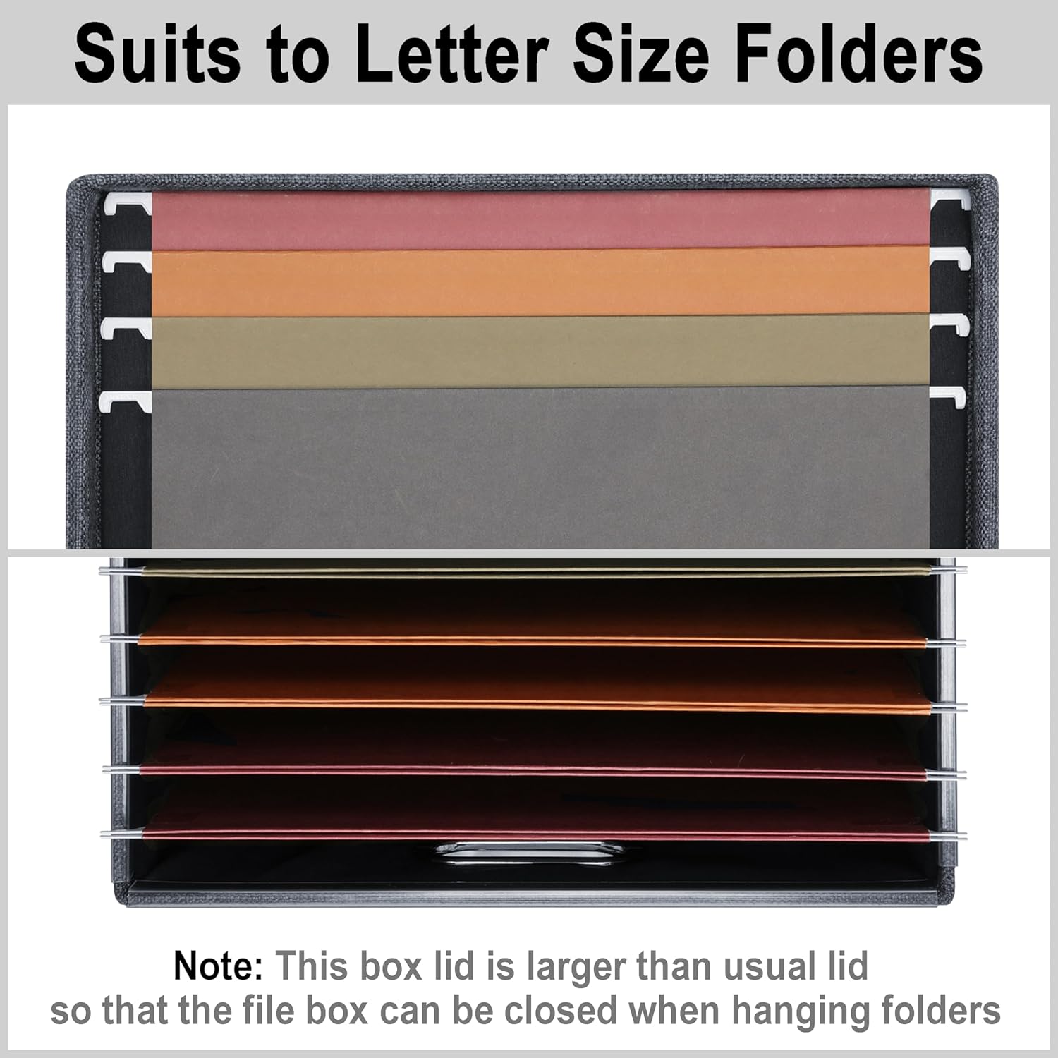 - Quality Files Protector: Our hanging file organizer box with folders composed of thick textured linen cover and heavy-duty thick density cardboard. Solid and wear-resistant, the stack ability of our hanging file folder organizer box is at least 50 lbs. Every hanging file folder box with lid can protect your files from misshapen and You can use these hanging file folder portable box for file folders everyday or for long term storage.