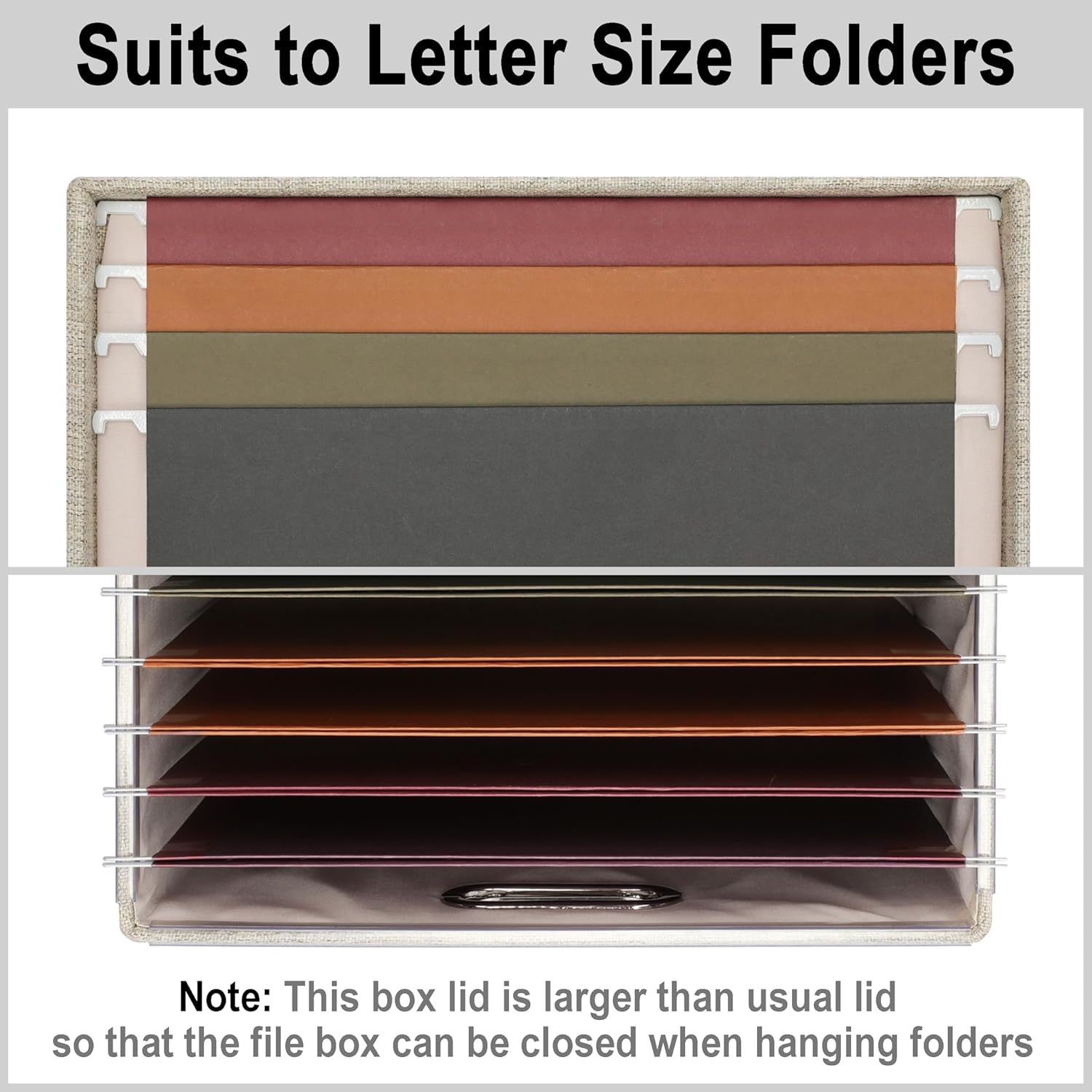 - Capacity for Letter Size Hanging Files : Measures 12.2 x 9.8 x 11 inches, our decorative file storage boxes with lids a great size to organize all your hanging Letter folders or other office things like paperworks, letters, folders, files. You also can use this desktop file storage box portable to store books, toys, clothing,home repair tools etc. This office file storage box small keeps you away from a messy desk!