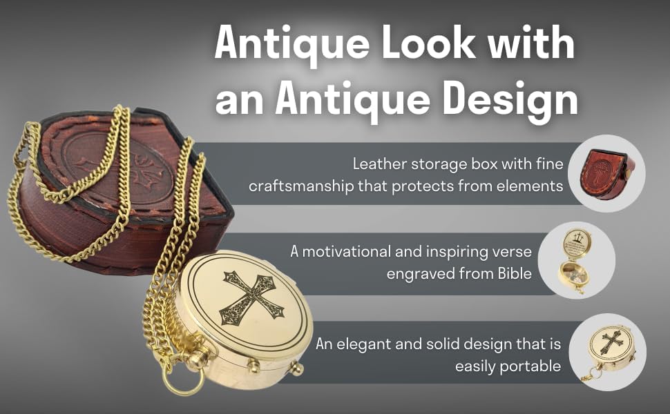 - Premium Quality: This pocket compass is made with the finest quality brass with a burnished brass finish, making it highly durable and suitable for outdoor use. The religious gift comes with a leather storage case that boasts fine craftsmanship to keep your compass safe.