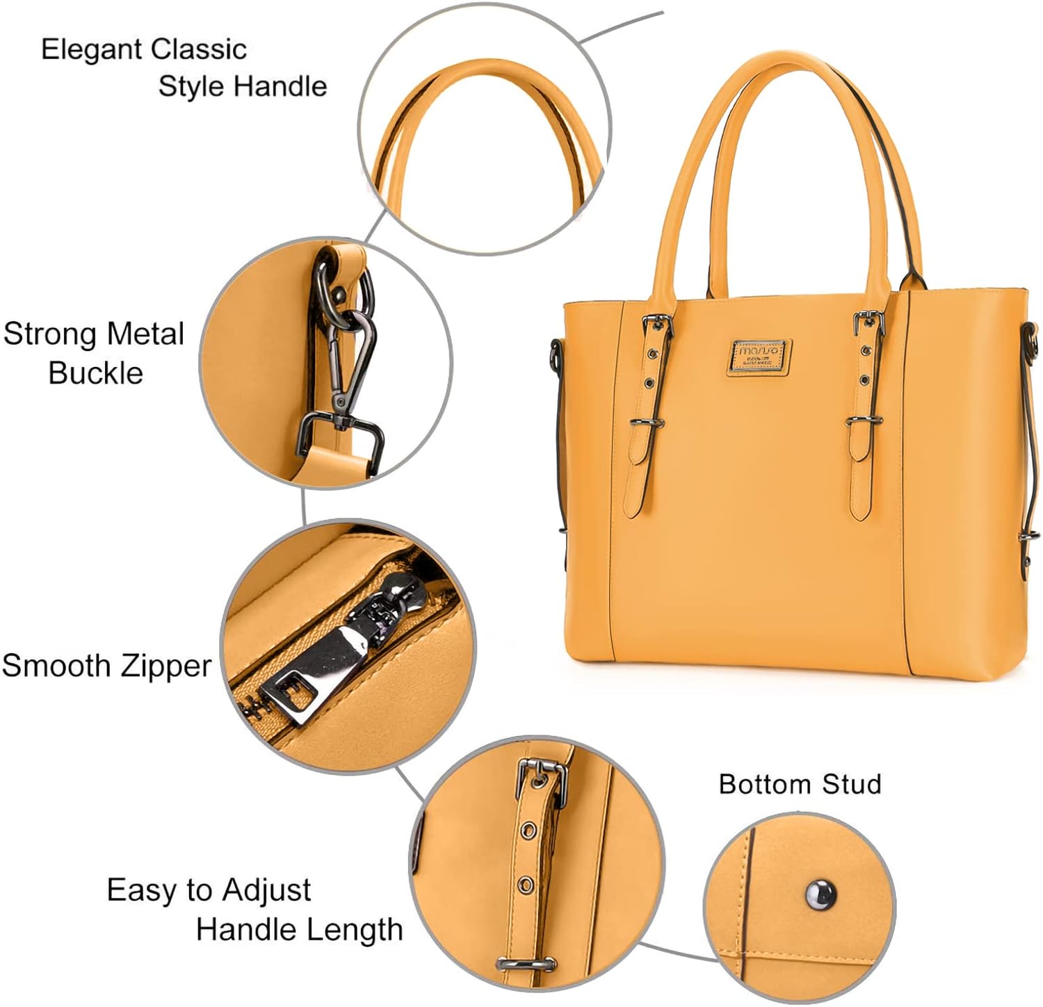 MOSISO PU Leather Laptop Tote Bag for Women, Waterproof Large Capacity Business Work Briefcase Shoulder Laptop Bag