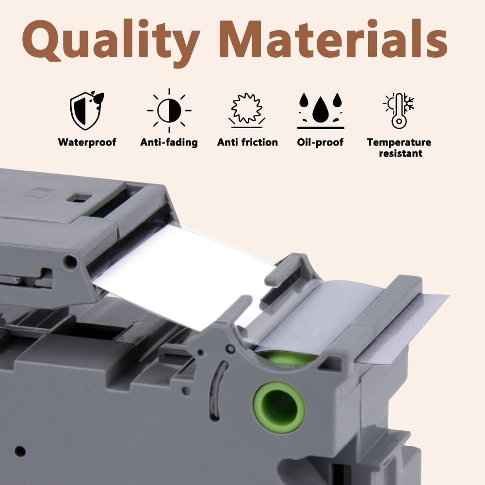 - Wide application: Compatible for Brother P-touch TZe 355 label tape is ideal to print clear, good-looking and durable labels. These labels are great for shelving, kitchen use, cabinets, file folders, USB sticks, food containers, storage boxes, personal possessions, children's school equipment with it's superior adhesive