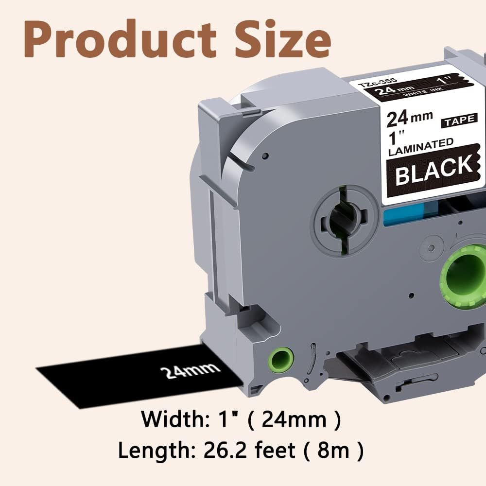 Hehua 24mm Black Tape Compatible for Brother TZe-355 White on Black P Touch Label Tape, TZe355 24mm TZe Label Tape Compatible for Brother TZ Tape 24mm 0.94 Laminated for Ptouch PT-D600 D610, 3 Pack