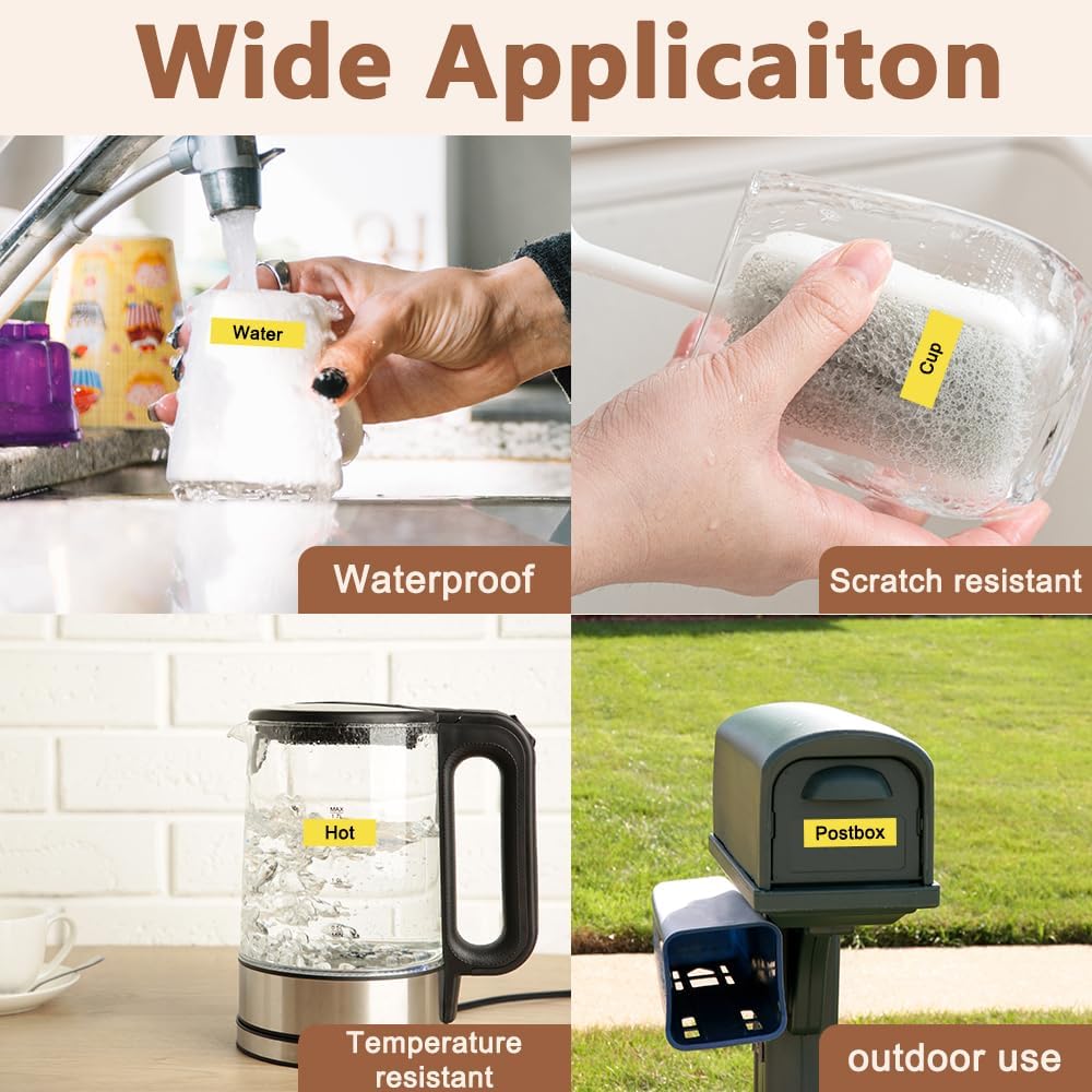 - Wide application: Compatible for Brother P-touch TZe 641 label tape is ideal to print clear, good-looking and durable labels. These labels are great for shelving, kitchen use, cabinets, file folders, USB sticks, food containers, storage boxes, personal possessions, children's school equipment with it's superior adhesive