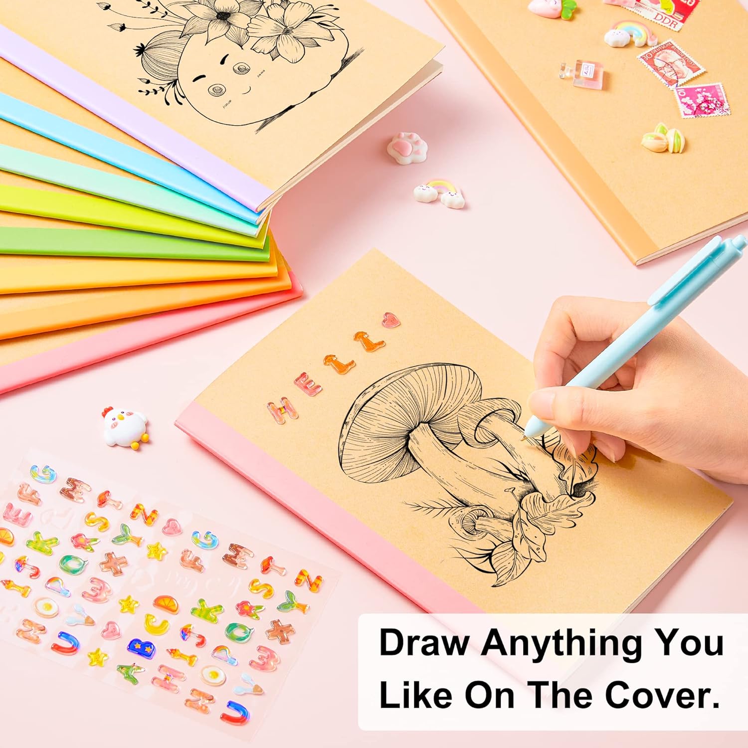 - Feela Composition Kraft Notebooks contain 16 kraft cover notebooks with rainbow spines of 8 different pastel colors. There are 2 notebooks of the same color. Each of them measures 8.3” x 5.5”, which is easy to carry in bag and easily held by students.