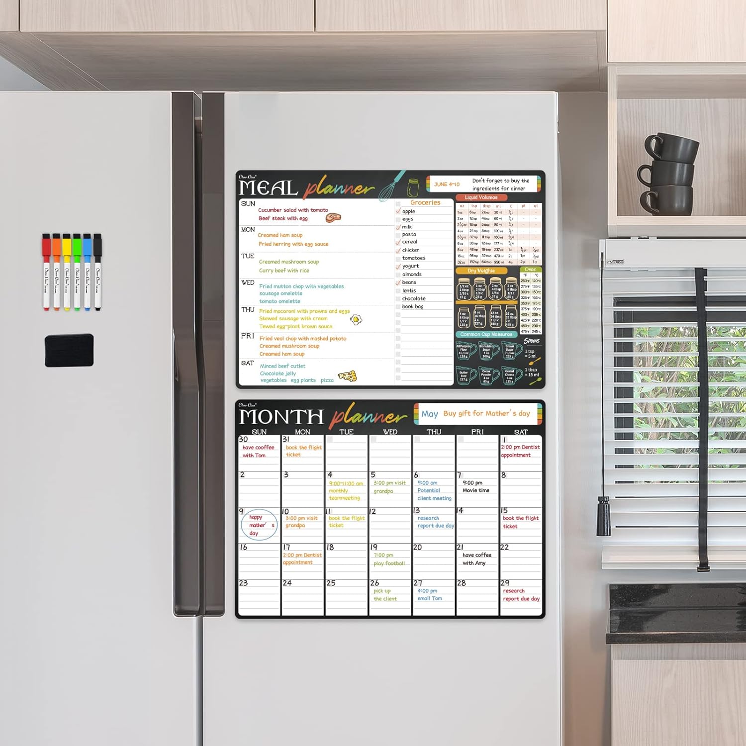 Magnetic Dry Erase Monthly Calendar and Menu Board - 17"x12" Monthly Planner and Meal Planning Board for Fridge - 6 Extra Fine Point Markers Included - Shipped Flat