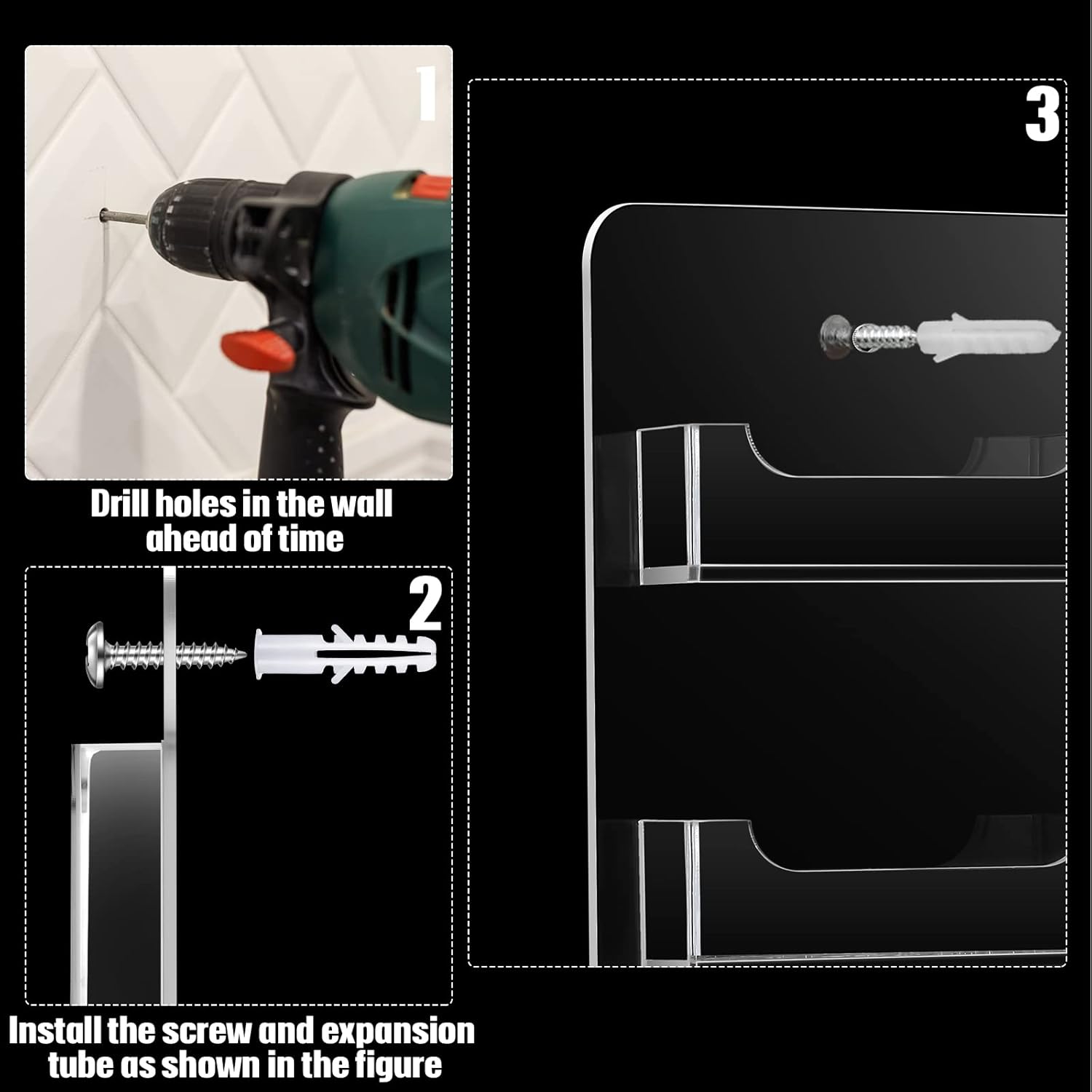 Qunclay 2 Pack 12 Pocket Acrylic Business Card Holder Wall Mount Clear Sticker Display Rack Vertical Multiple Gift Card Rack Display Stand for Home Documents Brochures Hanging Organizing Office Table
