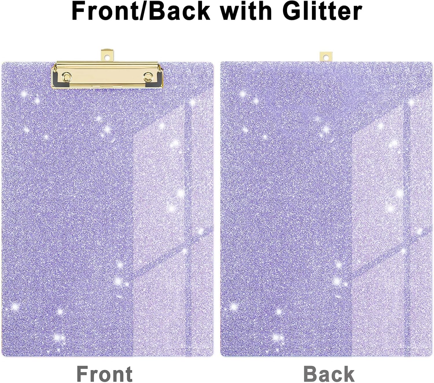 Glitter Acrylic Clipboard Decorative Standard A4 Letter Size 12.2" x 8.7", Fashion Bling Clip Boards with Designed Low Profile Gold Clip for Classroom Office - Purple
