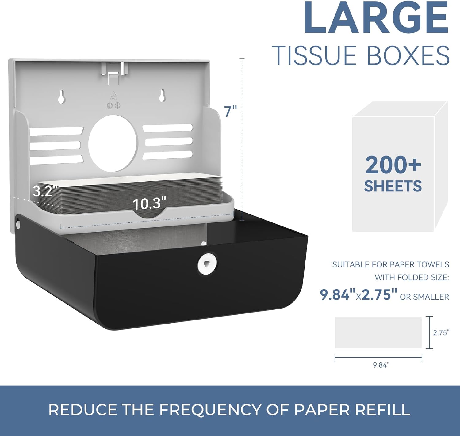 - Large Capacity -- our economical folded paper towel holder can hold up to 200 paper towels, which is very suitable for public places.