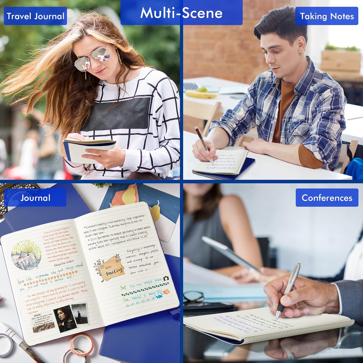 - These travel journals bulk for women have 92 blank lined pages (46 sheets), which would be sufficient for daily usage. The note taking notebooks have a smooth cover, round corners and tight stitching, which are designed to lay 180° flat. Some quick notes can help you remember important dates and find the page you want in a very short time.