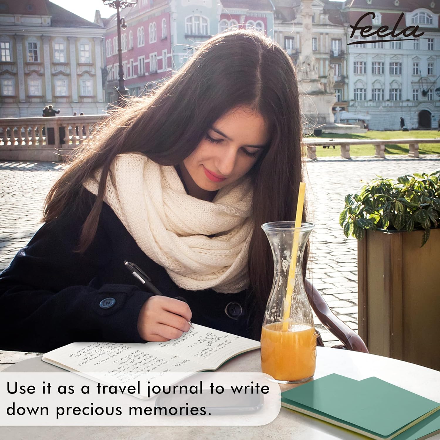- Feela 16 Pack Soft Cover Journals include 16 dark green A5 college ruled soft cover travel journals. 250 GSM colored paper cover outside and 80 GSM smooth writing lined pages inside.