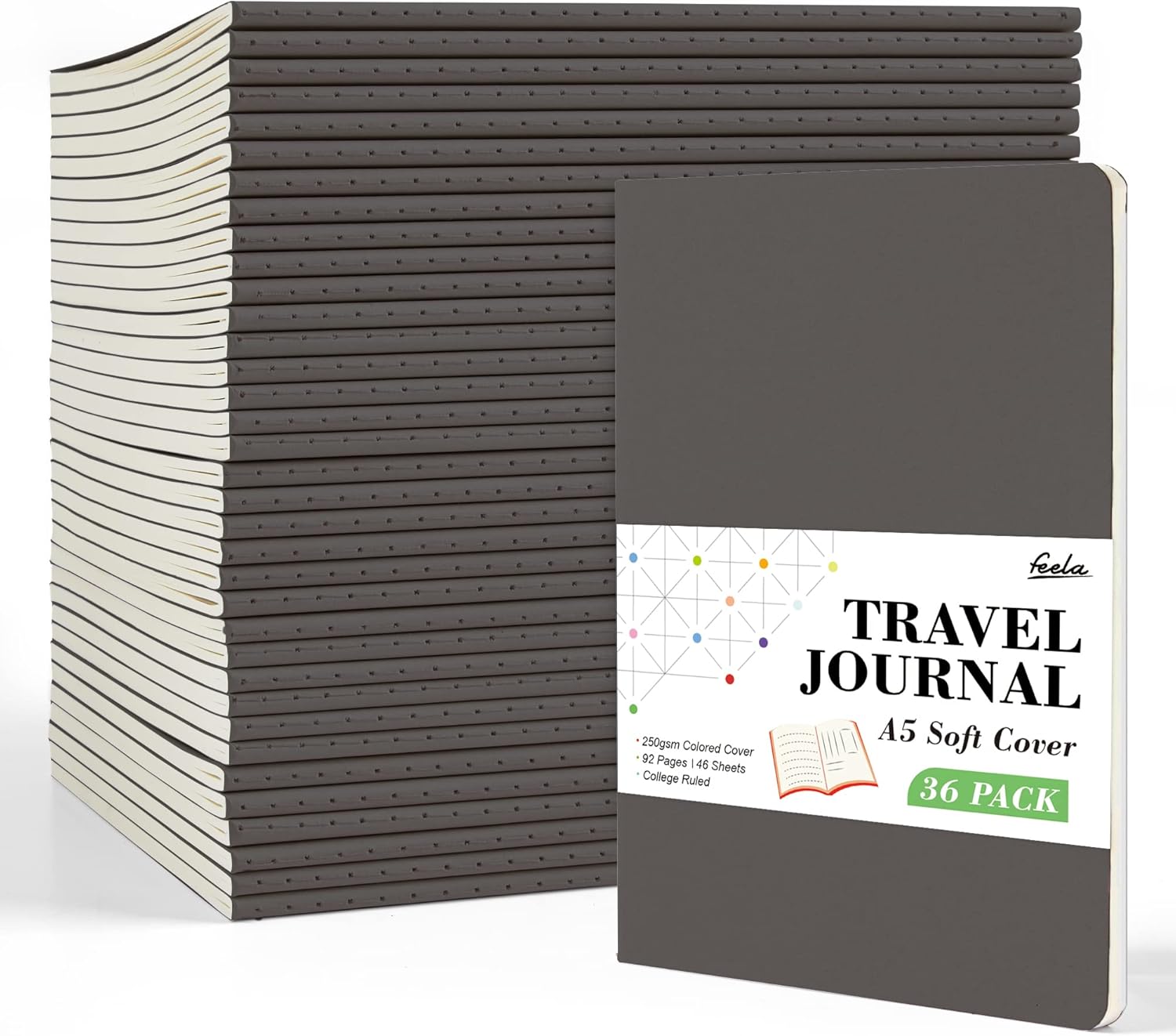- Feela 36 Pack Soft Cover Journals include 36 gray A5 college ruled soft cover travel journals. 250 GSM colored paper cover outside and 80 GSM smooth writing lined pages inside.