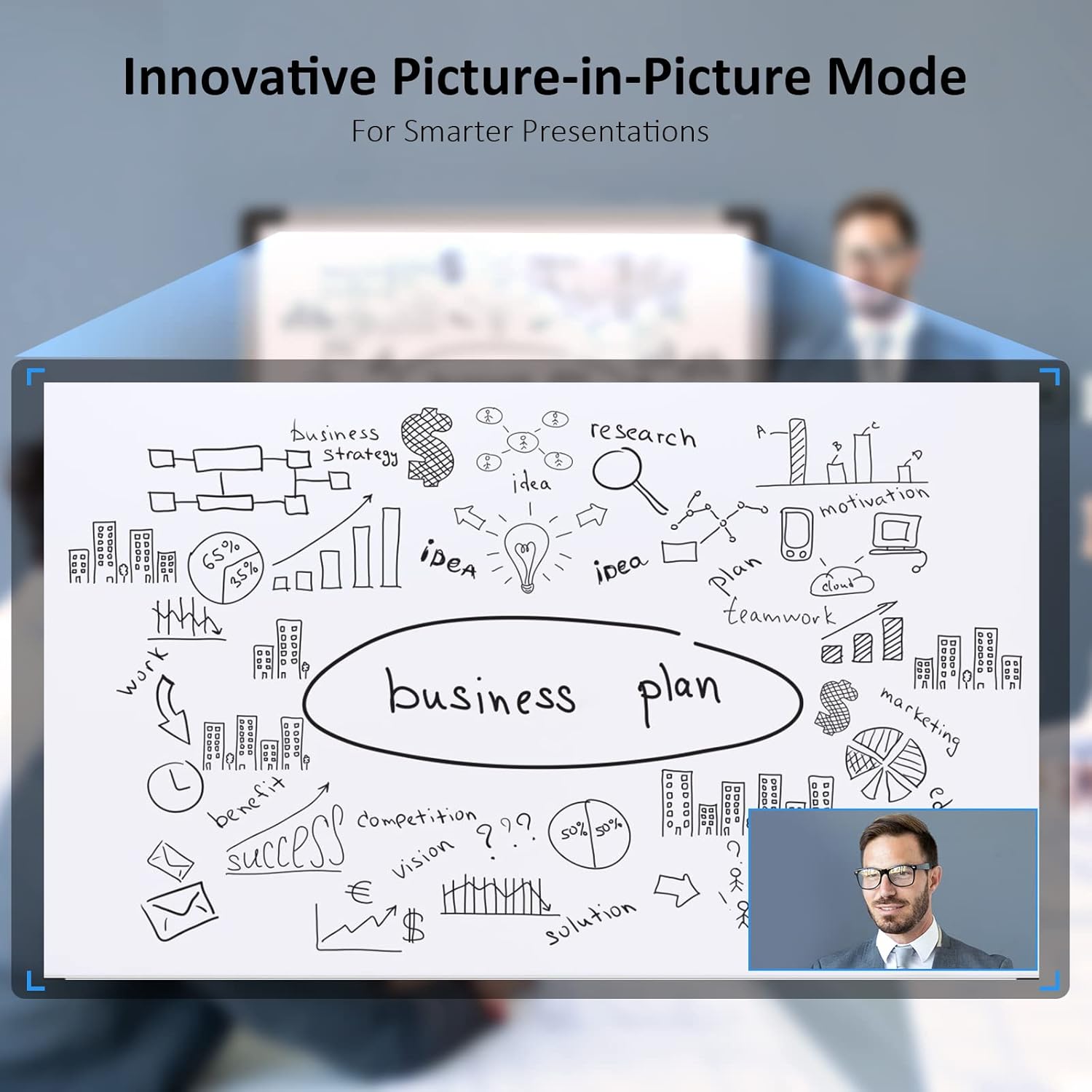 - 【Innovative PiP and Smart AI】The intelligent AI enables automatic framing and tracking functions for the best angles in every video call. Picture-in-Picture(PiP) mode also lets you show off meetings like never before, letting you display a small frame that highlights your face and a larger frame that can zoom in to your liking. It also offers 10 programmable positions that allow you to make changes quickly with pan, tilt, and zoom functionality.