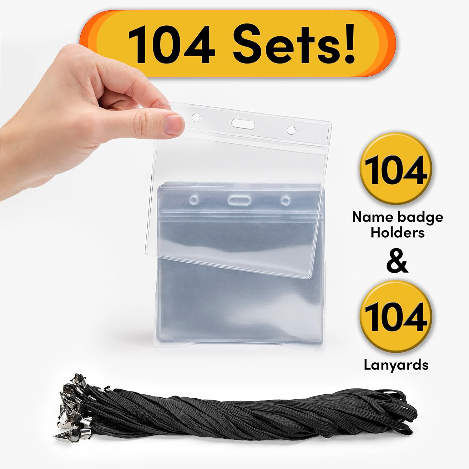 SEE-IT! 104 & 52 Qty Sets Badge Holders with Lanyards Name Tag Holders and Lanyards 4x3 Size Quick Load No Zipper Name Tag Badge id Holder Clear Plastic (104)