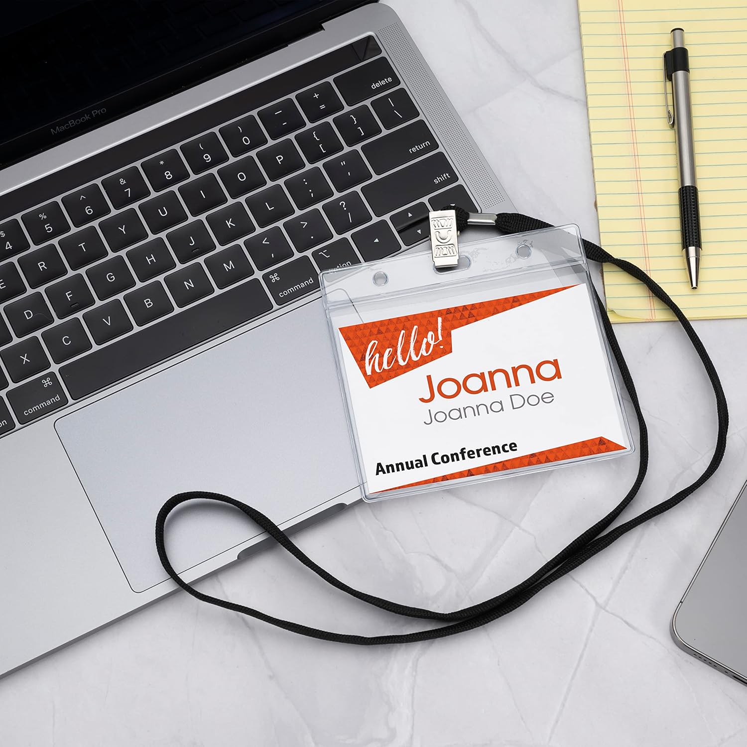 - QUICK LOAD - IT! - NO ZIPPER FAST LOADING Easy To Use 4x3" Badge Holders Name Tag Holders id Holders for Easy Insert Then Just Clip the Lanyard to the Plastic Name Tags and GO. Compatible with Avery Name Badge Inserts # 5392