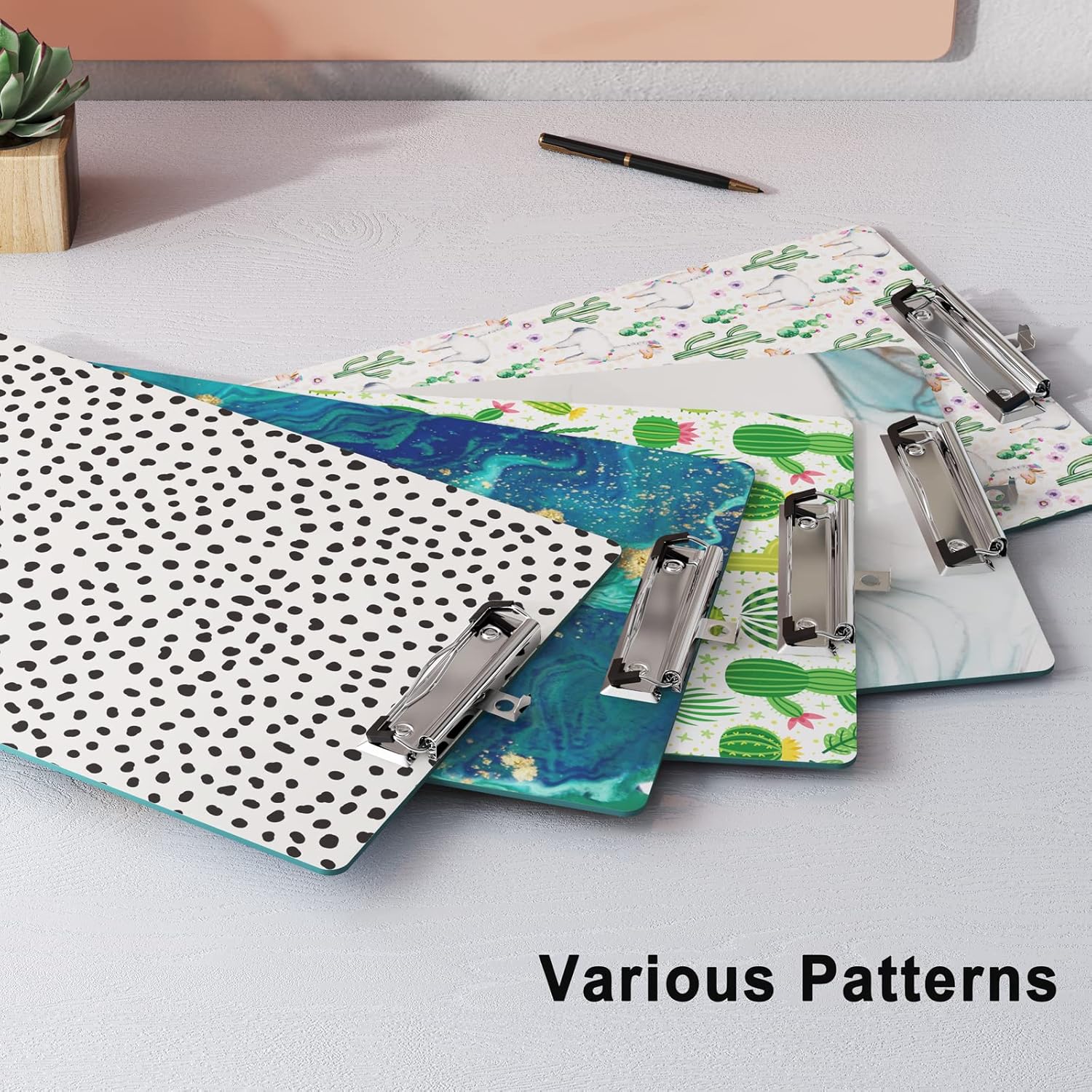 - 【High Quality Materials】The decorative clipboard with sturdy wood fibers base won’t flex, cracking, much lighter. Clip made of Steel nickel plated, can be used for many years. Fashion full color printing and gloss lamination, none of the colors were faded.