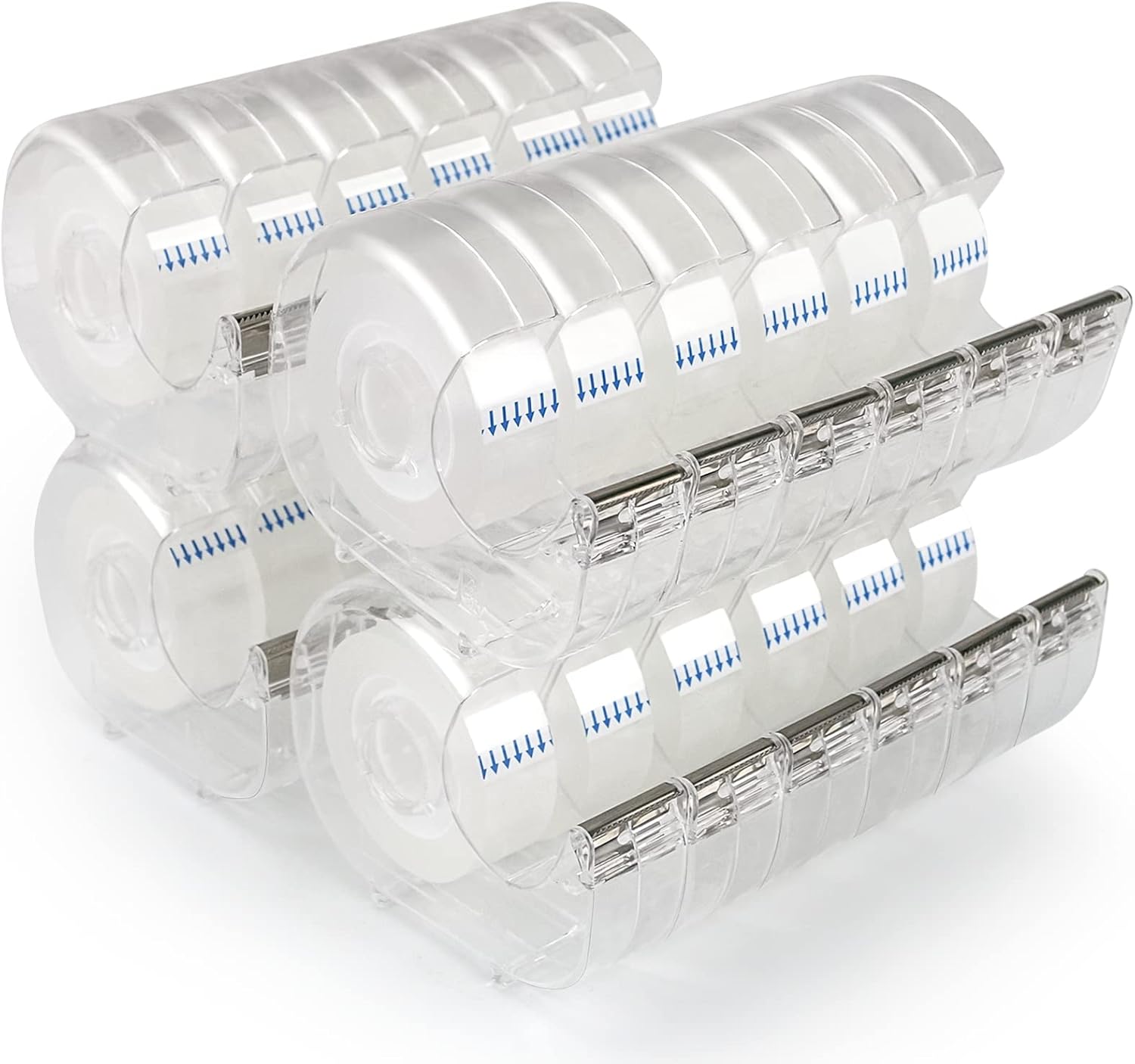 - Valuable Packing: You can get 24 pcs transparent dispensers, 3.94 in X 0.98 in X 2.95 in. And 24 complimentary clear wrapping tapes, 0.7 in x 28 yd. This transparent tape package is enough for you to use for a long time