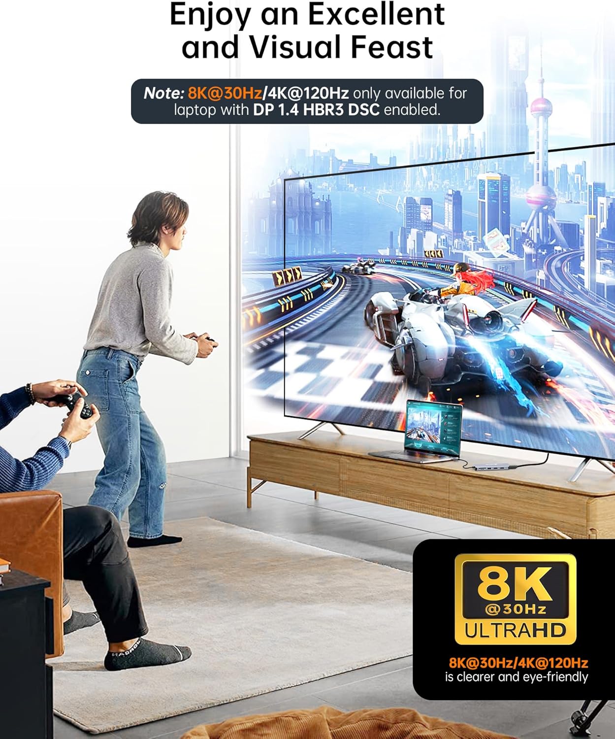 - 【Triple Display USB C Hub Dock】This docking station to dual HDMI+DP ports can mirror or expand videos to external three or dual monitors. Support both SST mode For OS System and MST mode For Windows System.Stream movies, presentations or video games on your monitors in one click: 2 HDMI ports can be used simultaneously, resolution up to 4K@30Hz. Please note that if you use it to connect MacBooks, it only support mirror mode.