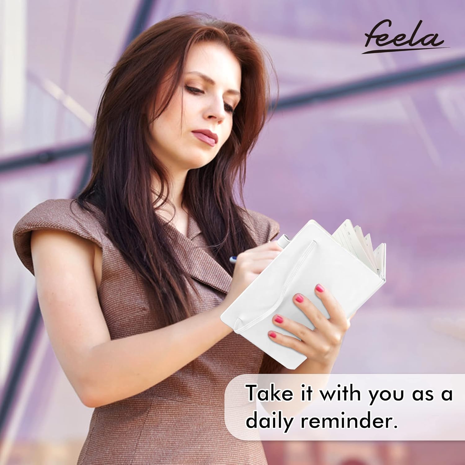 feela 5 Pack Notebooks Journals Bulk, Hardcover Notebook Classic Ruled Lined Journals with Pen Holder for Women Girls School Business Supplies, with 5 Black Pens, 120 GSM, 5.1”x8.3”, A5, White