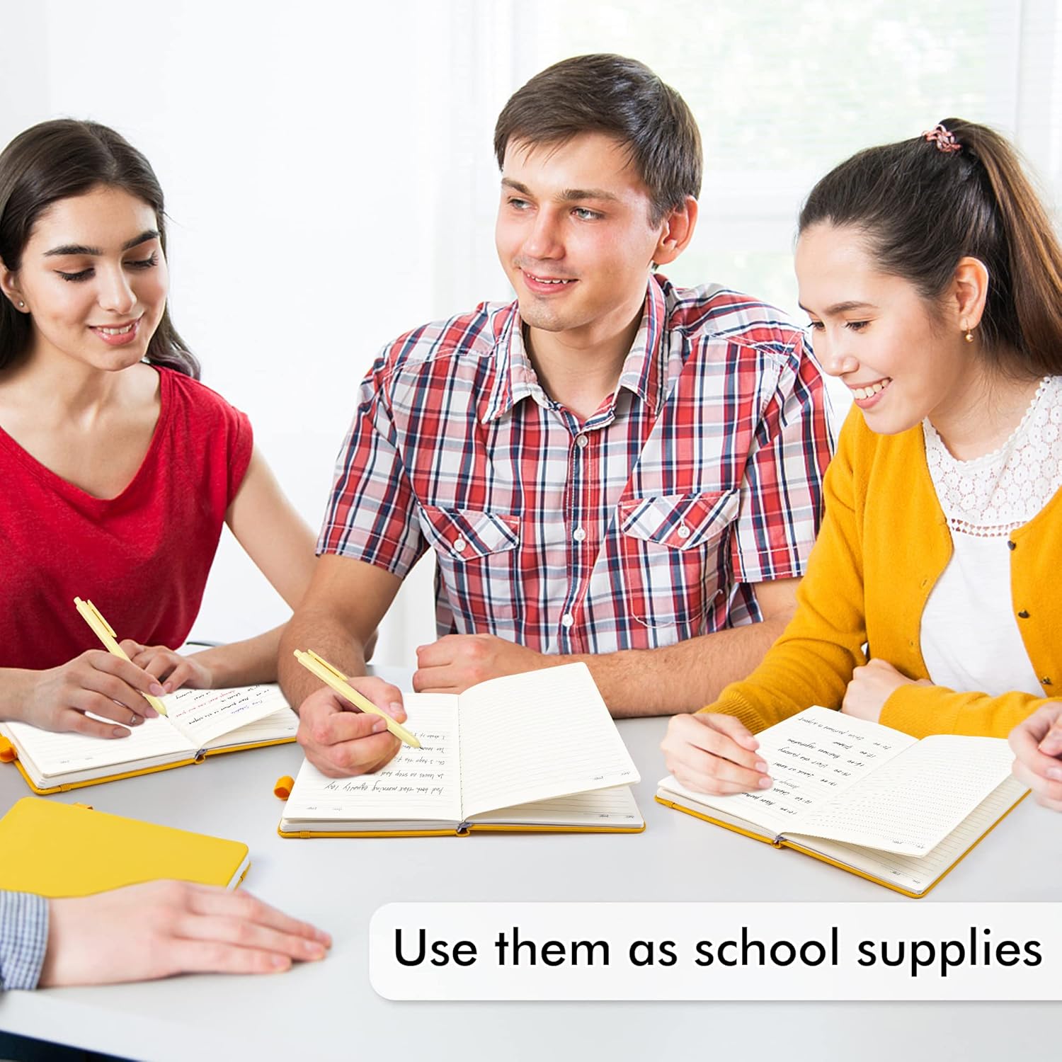 - Feela 8 Pack Classic Ruled Notebooks contains 8 yellow ruled sturdy cover notebooks and 8 Black Retractable Pens. Each of the notebooks measures 8.3” x 5.1”, which is perfect to carry and easily held by young girls and boys. These black cute pens are customized to be placed in the pen holder, which is pretty convenient.