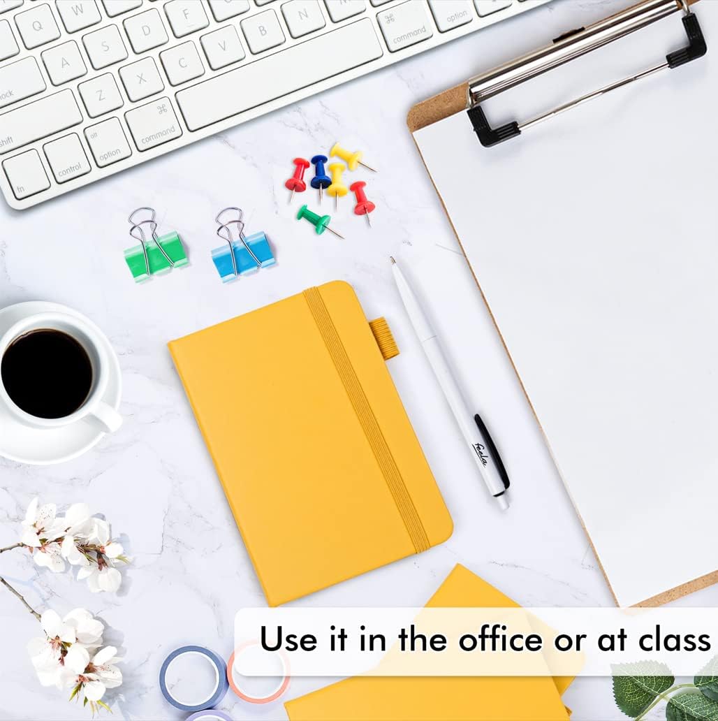 feela 15 Pack Pocket Small Notebooks Bulk, Mini Cute Notepads Hardcover College Ruled Lined Journals with Pen Holder for School Business Memos, with 15 Black Pens, 3.5”x 5.5”, A6, Yellow