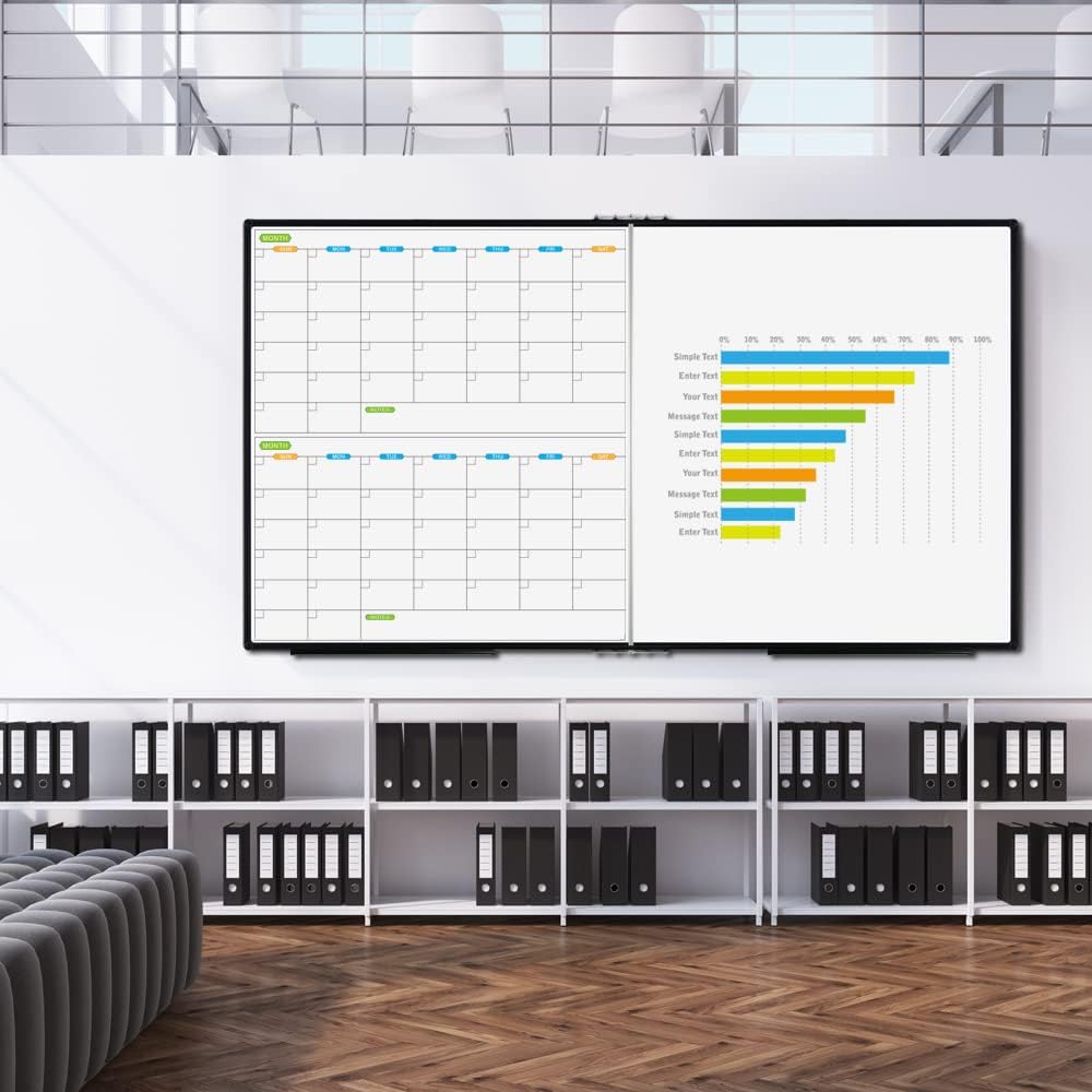 JILoffice Magnetic Foldable Dry Erase Calendar Whiteboard Combo, 2 Month Calendar Board & White Board 72 X 40 Inch, Black Aluminum Frame Wall Mounted Board for Office Home and School