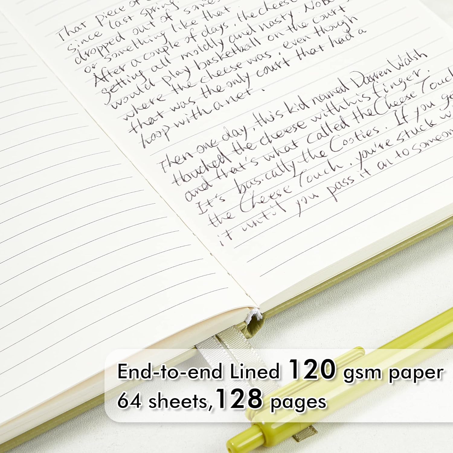 feela 5 Pack Notebooks Journals Bulk, Hardcover Classic Ruled Lined Journals with Pen Holder for Women Girls School Business Supplies, with 5 Black Pens, 120 GSM, 5.1”x8.3”, A5, Avocado Green