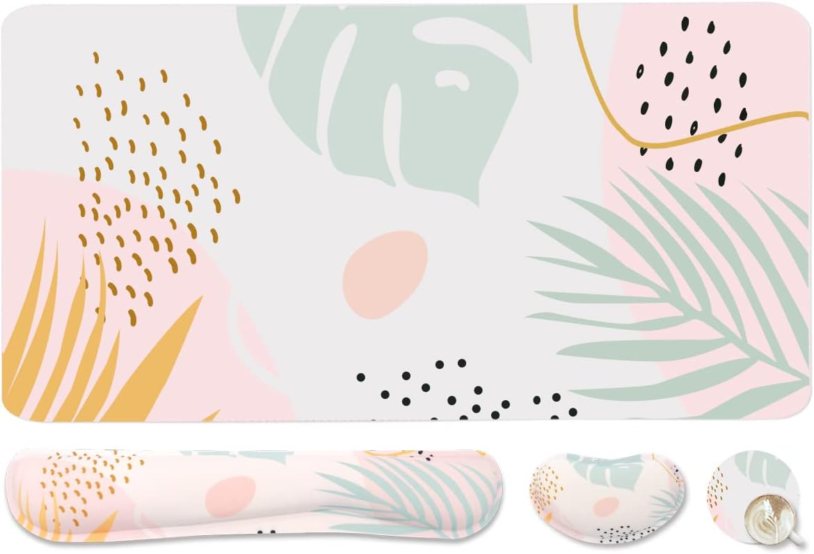 Keyboard Mouse Pad Set, Extended Mouse Pad+Keyboard Wrist Rest Support, Memory Foam Ergonomic Easy Typing, 3Pcs (35.4×15.7 in) Desk Pad Set for Home Office Study Game-Plant