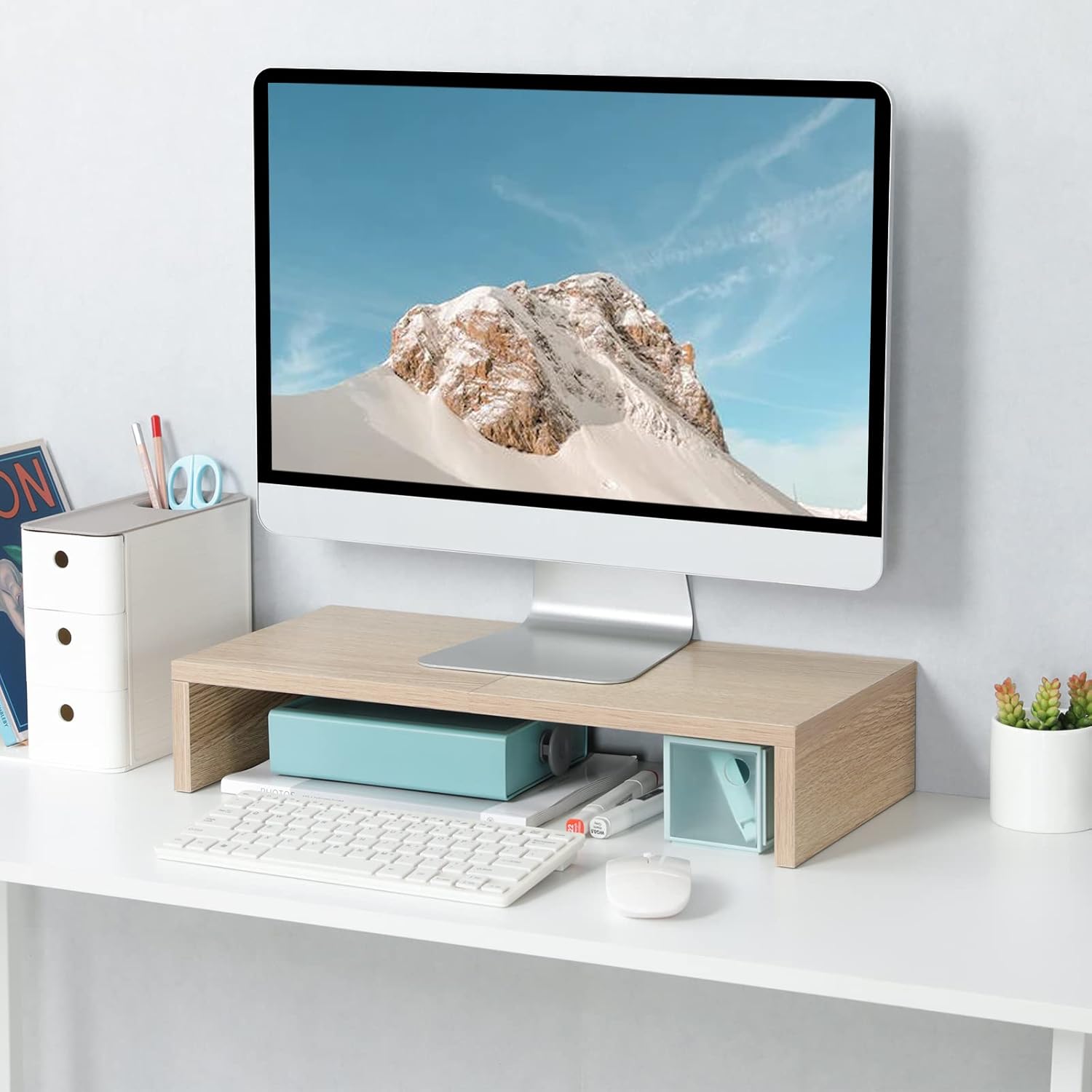 TEAMIX 20 Inch Wood Monitor Stand Riser, Wooden Desktop Stand for PC/TV/Laptop/Printer, Cozy Monitor Riser with Storage, Computer Stand Space-Saving
