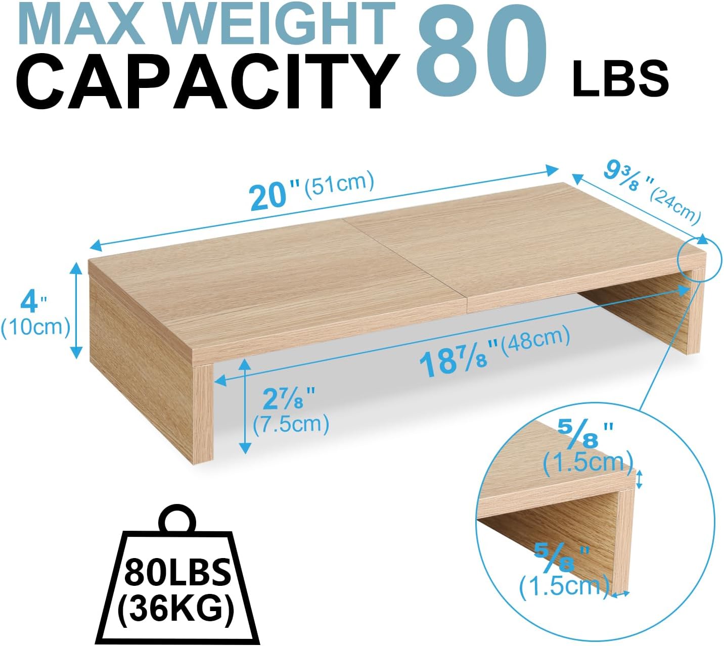 - ★Better Support★Stand can hold 80Ibs, there is a thick steel pipe stabilizing support structure on the back avoid shaking. TEAMIX monitor riser made of high quality MDF wood board, strong and sturdy.