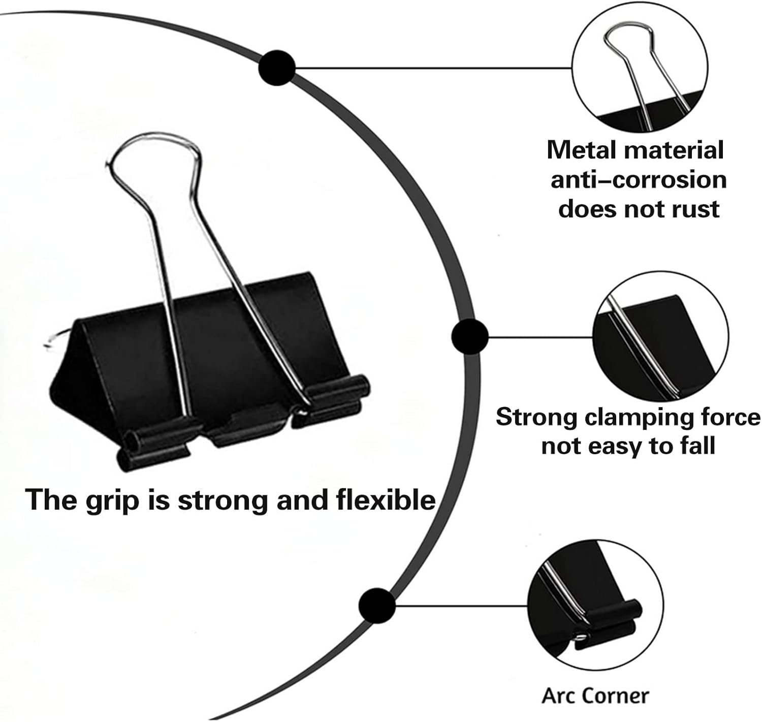 - HIGH QUALITY: Our binder clips are made of quality rust-resistant tempered steel, with smooth black coat finish and nickel plated handles, which are strong and sturdy.