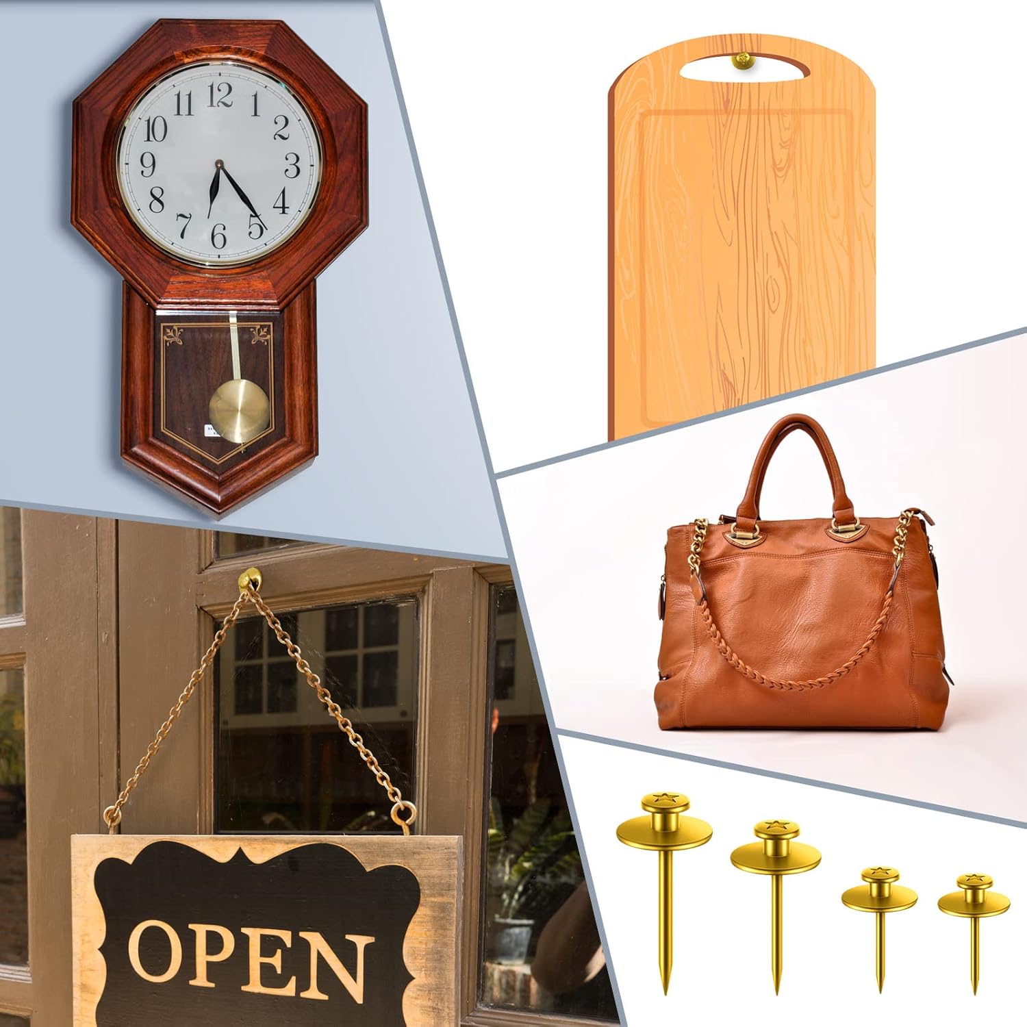 Zhengmy 40 Pcs Double Headed Picture Hangers Nails 4 Size Long Thumb Tacks Wall Nails for Hanging Pictures Decorative Push Pins Hooks for Drywall Photo Office Home Decor, 20/30/ 40/ 50lb(Gold)