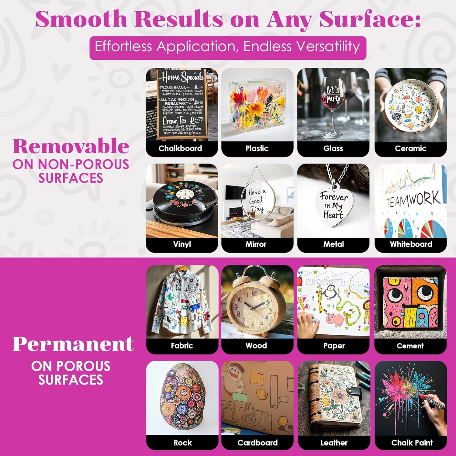 - Erasable Creativity: Use these erasable chalk markers on any non-porous surface and wipe these fine liquid chalk markers for chalkboard clean with water. These chalkboard chalk markers are perfect for eye-catching storefront displays or adding creativity to your home. These chalk pens for chalkboard are a must-have for every artist's toolkit