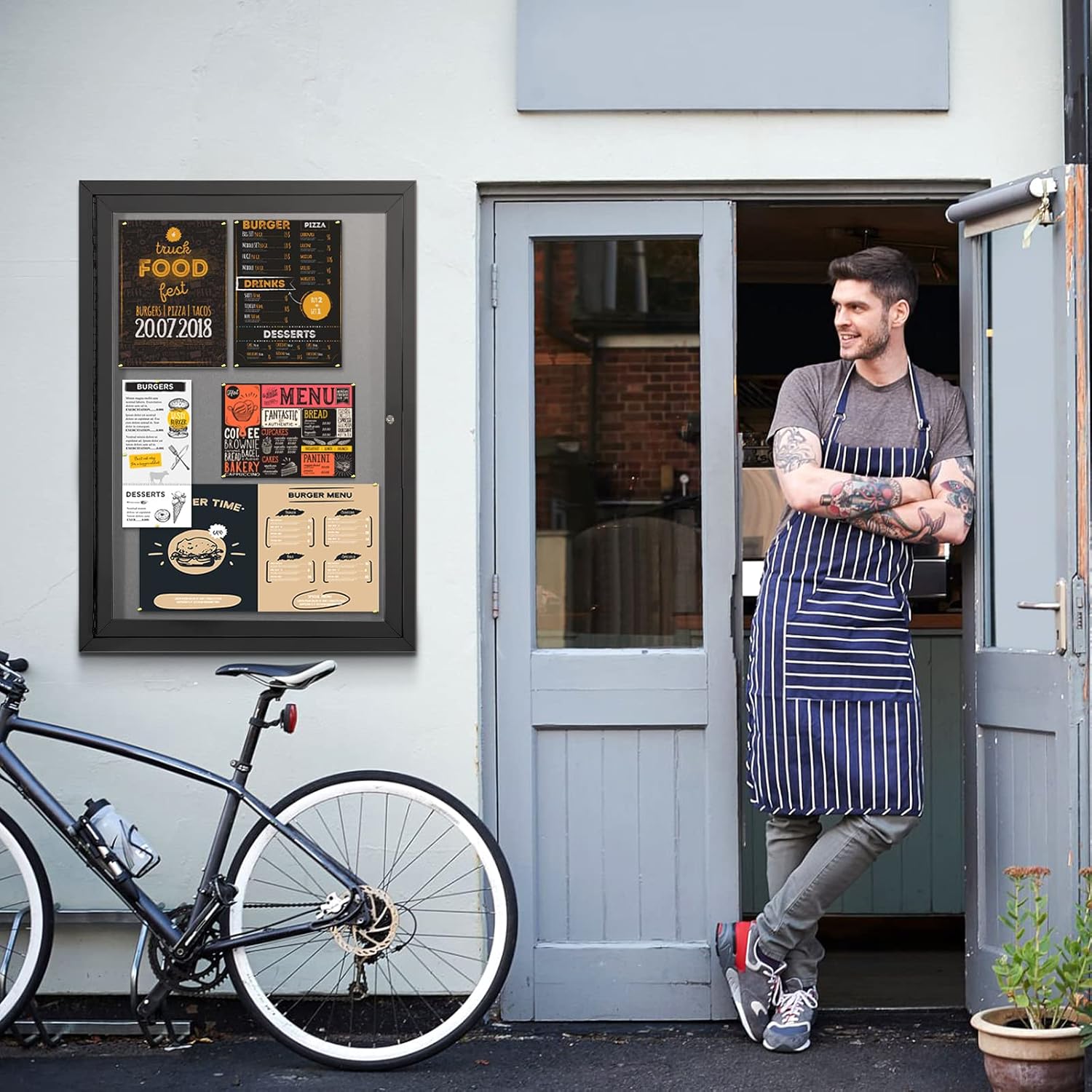 Enclosed Bulletin Board Outdoor Noticeboard with Locking Door, Weather-Resistant, Grey Felt, Black Aluminum Frame, 36 x 24 in