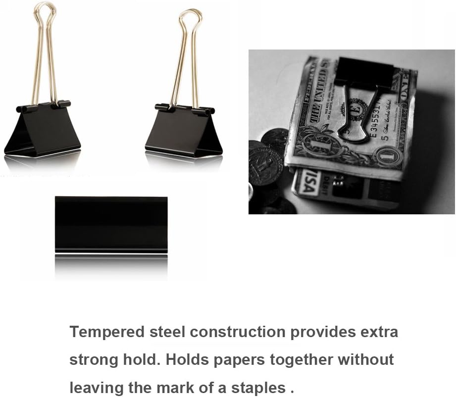 - STORAGE - These binder clips are made of iron material, strong and durable, black and silver color. Packaged In A Reusable Plastic Container For Easy Storage.