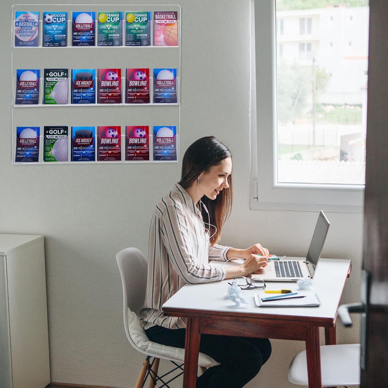 Eersida 2 Pack Acrylic Brochure Pamphlet Holder Wall Mount Clear Brochure Display Holder Plastic Trifold Flyer Rack Literature Storage Rack for Offices Waiting Room (18 Pockets, 25 x 22 Inch)