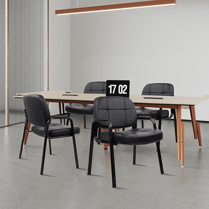 CLATINA Big & Tall 500 lbs Waiting Room Guest Chair, Leather Office Reception Chair No Wheels with Padded Arms for Elderly Home Desk Conference Room Lobby Side Salon Clinic, Black(4 Pack)