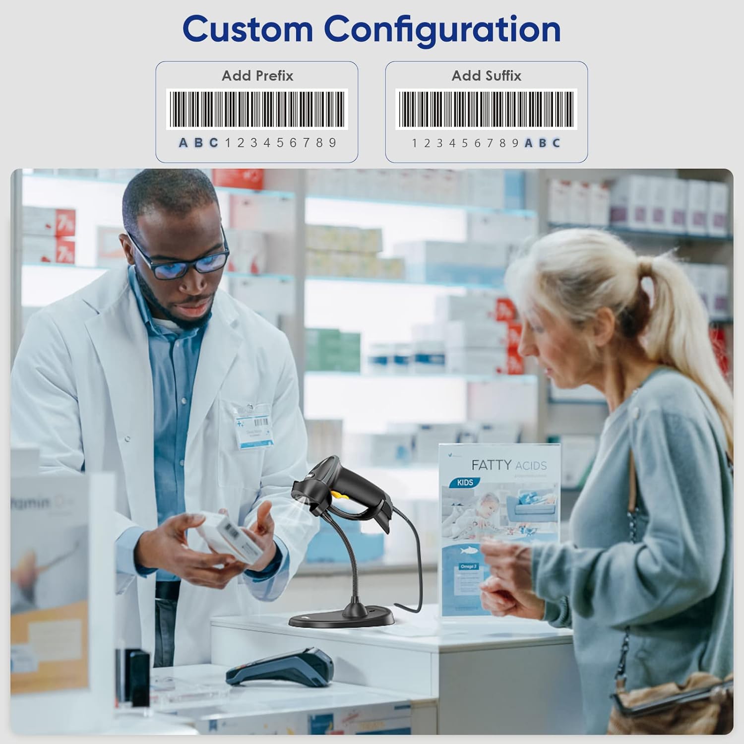 - Plug and Play USB Barcode Scanner, All Days Working: This wired USB barcode scanner delivers plug-and-play simplicity, no need drive and software, easy to use. The EY-H2 is designed for continuous usage all day as it is always ready for the next scan, with no need to charge, which significantly reduces downtime and shortens check-out lines. The Eyoyo scanner will provide lasting impressions for your loyal customers driven by fast, accurate, and friendly checkout experiences