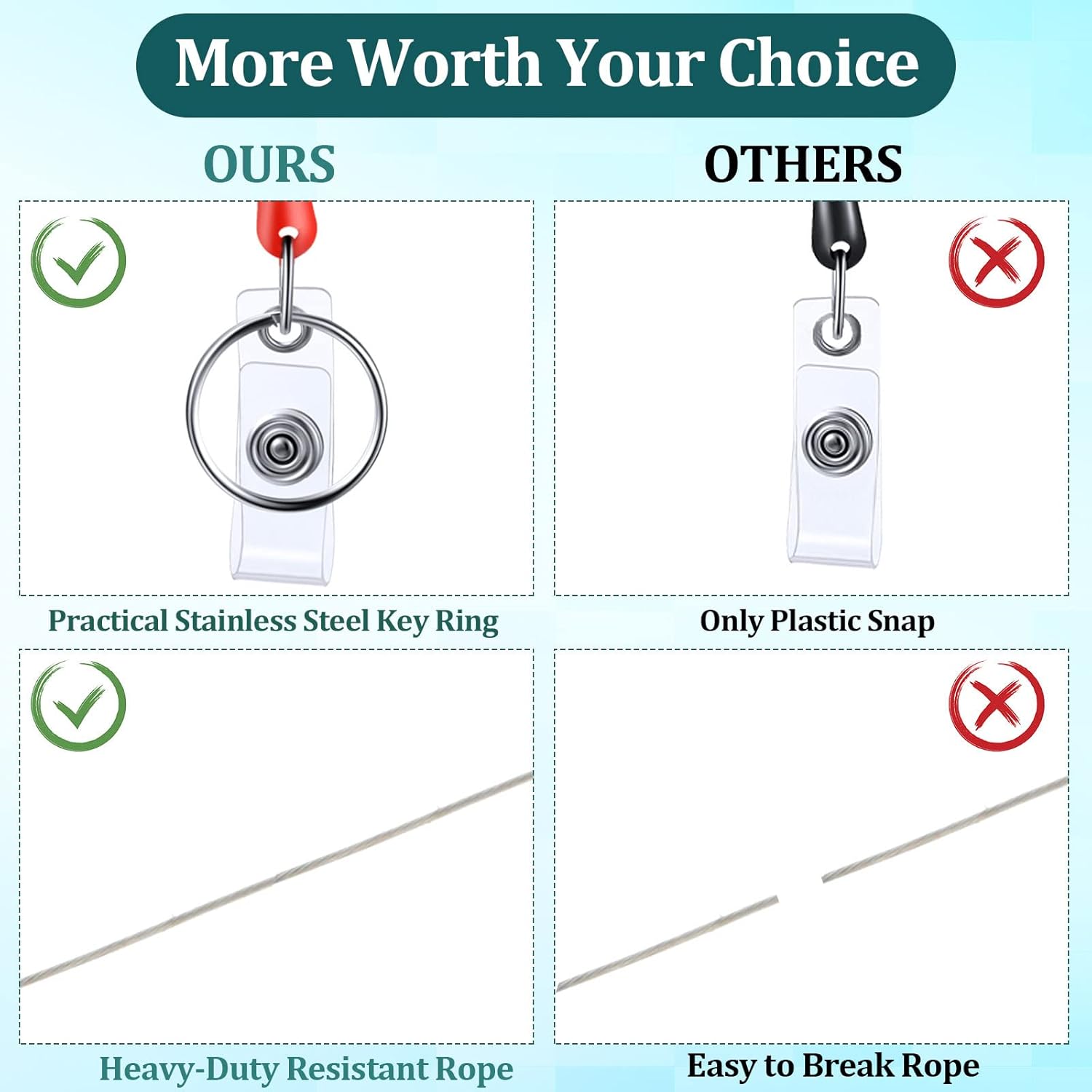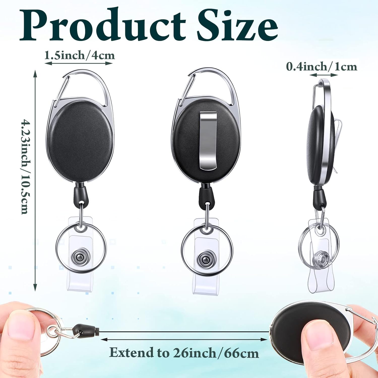 - Easy to Use: each retractable reel clip includes a spring clasp, plastic covers, retractable reel clip, stainless steel key ring for a more secure connection way to ensure fasten to your belt loops, straps, backpacks, bags effortlessly and quickly, allow convenient scanning or swiping badges, cards or keys