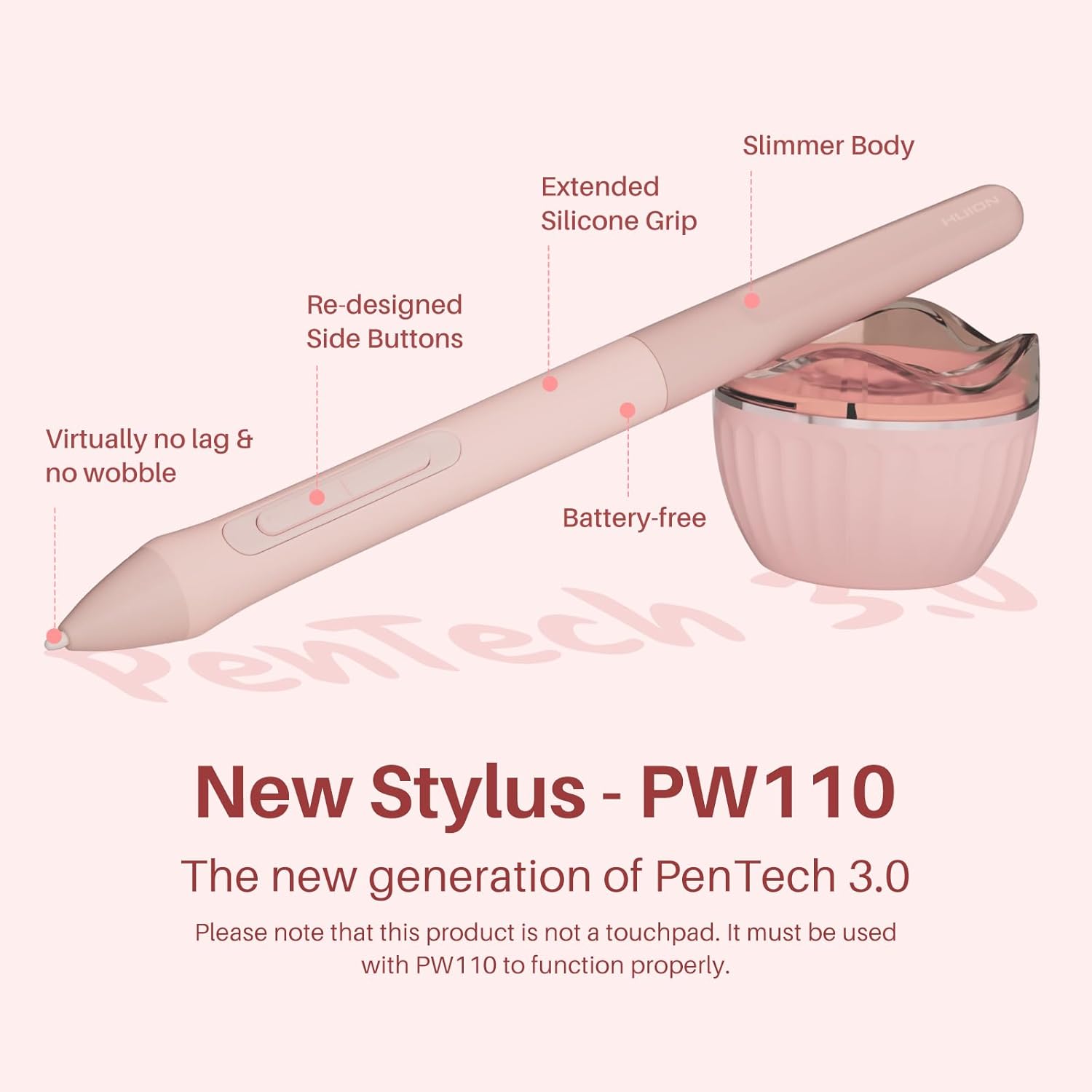 - [Ergonomics Pen Design]: The new digital stylus PW110 is improved designed with slimmer body, soft silicone grip & accessible side buttons for better ergonomics & comfort.