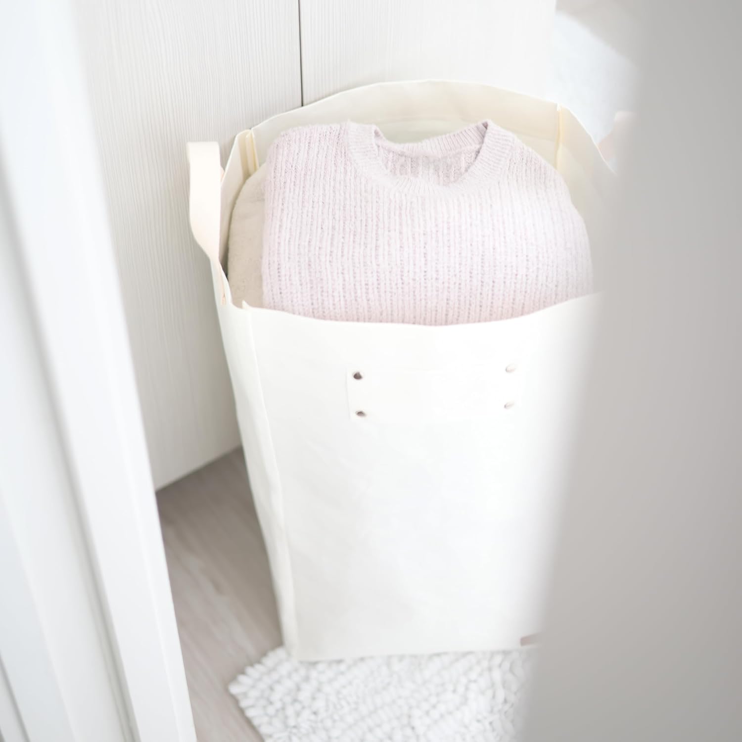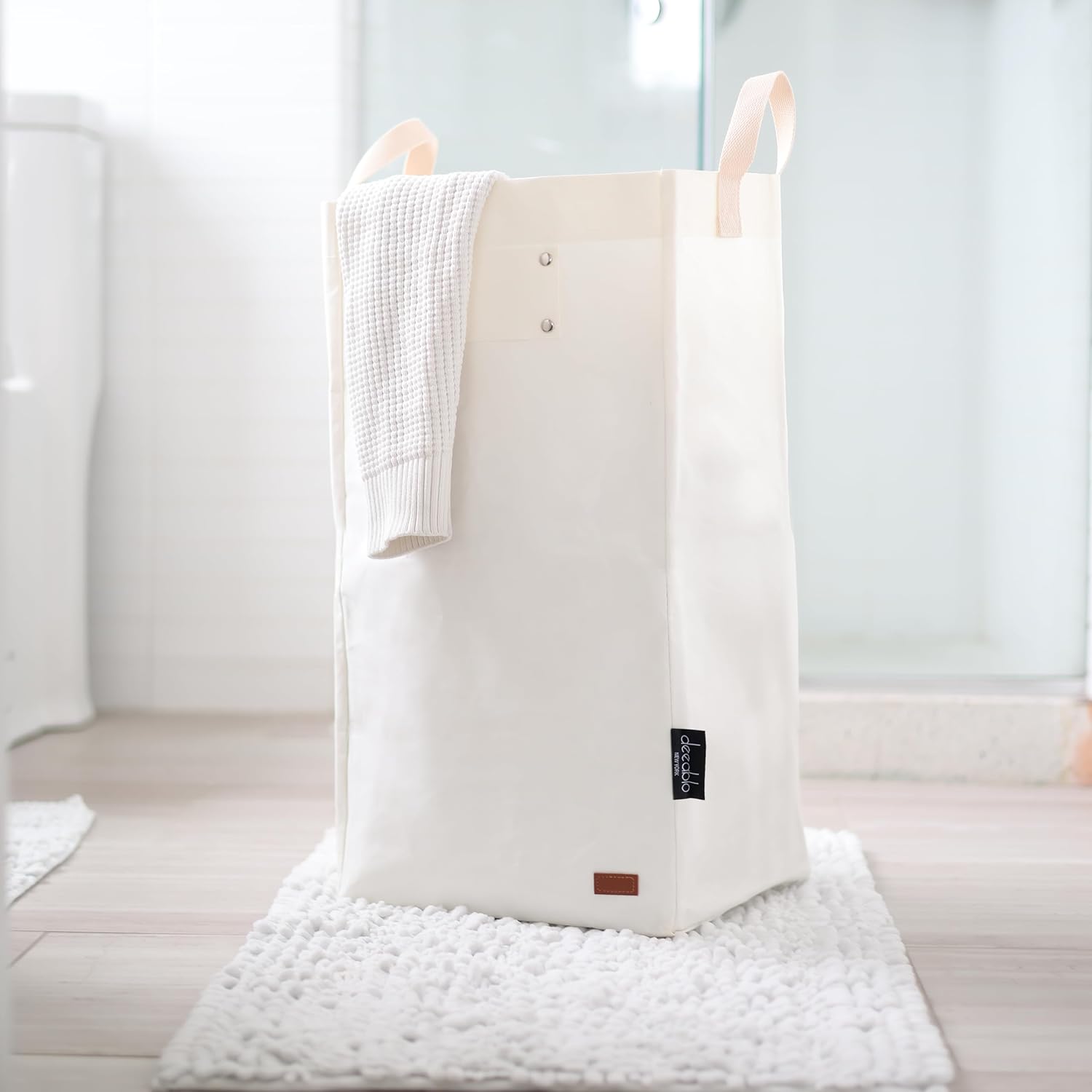 Deeablo New York - Sustainable Reusable Indoor Recycling Bin for Kitchen, Multipurpose Recycle Bin, Large Recycling Bins for Home, Washable Paper Bag for Recycling (White)