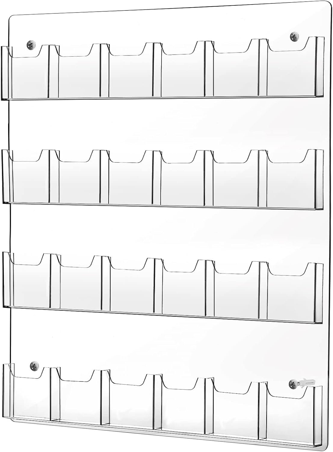- Suitable Size: the overall dimension of our acrylic brochure wall mount holders is 29.5 x 25.5 inches, each pocket dimension is 4 x 1 inch, and each pocket capacity is approx 50 postcards, this is a useful business card or gift card wall display solution