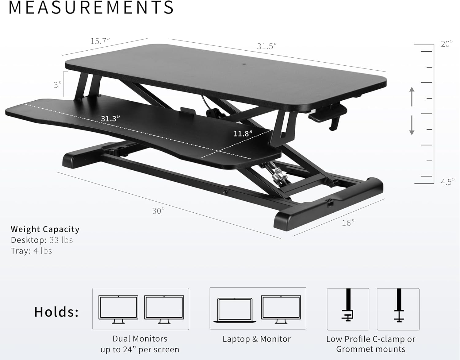 VIVO 32 inch Carbon Fiber Desk Converter, K Series, Height Adjustable Sit to Stand Riser, Dual Monitor and Laptop Workstation with Wide Keyboard Tray, Black, DESK-V000KR