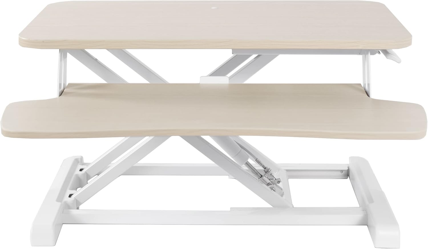 VIVO 26 inch Desk Converter, K Series, Height Adjustable Sit to Stand Riser, Dual Monitor and Laptop Workstation with Keyboard Tray, Light Wood Top, White Frame, DESK-V026KF