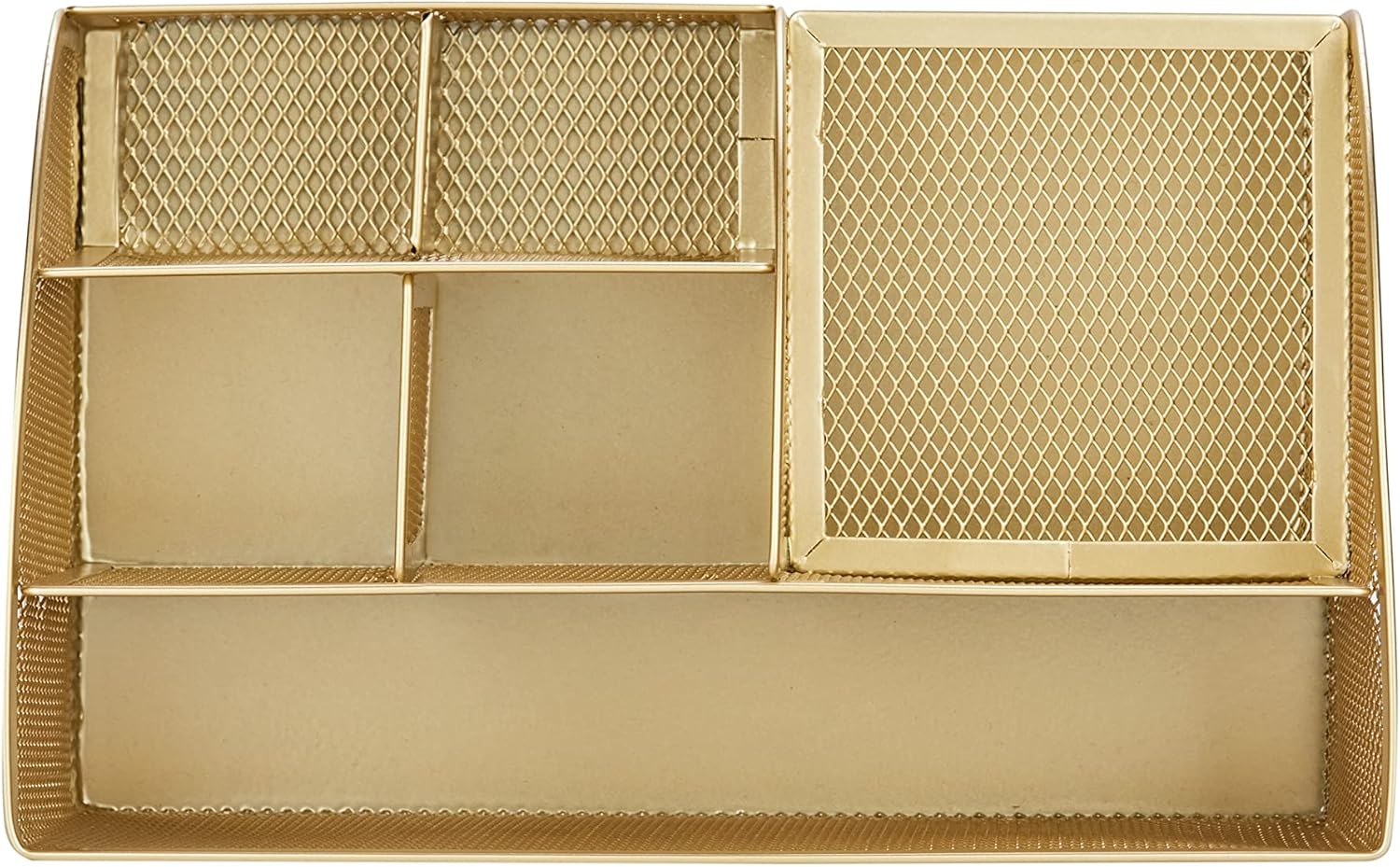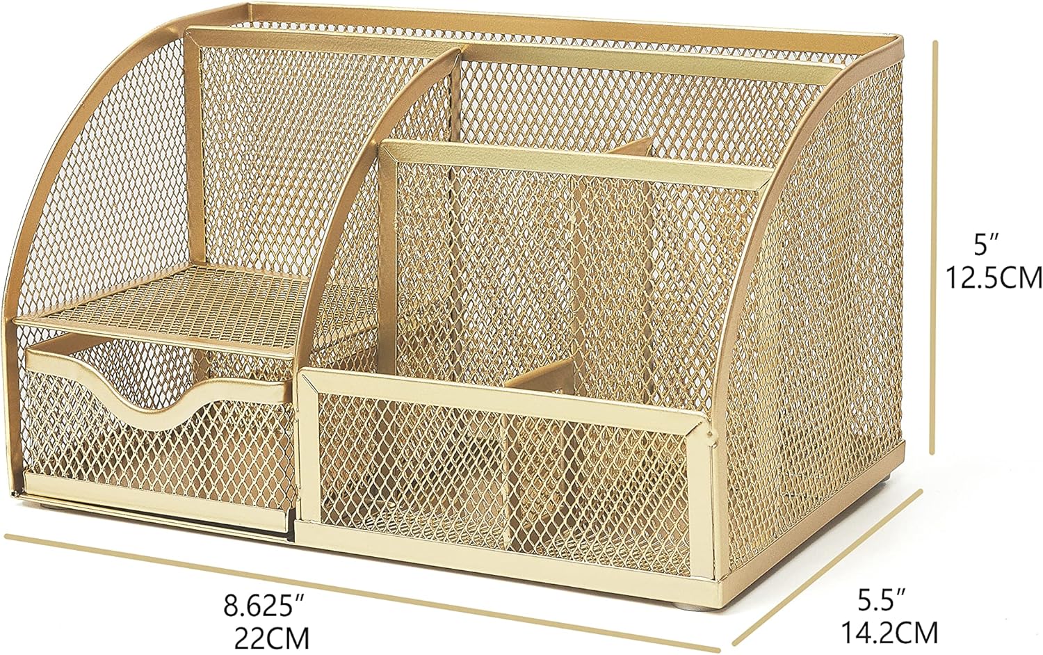 Annova Mesh Desk Organizer Office with 7 Compartments + Drawer/Desk Tidy Candy/Pen Holder/Multifunctional Organizer (Gold)