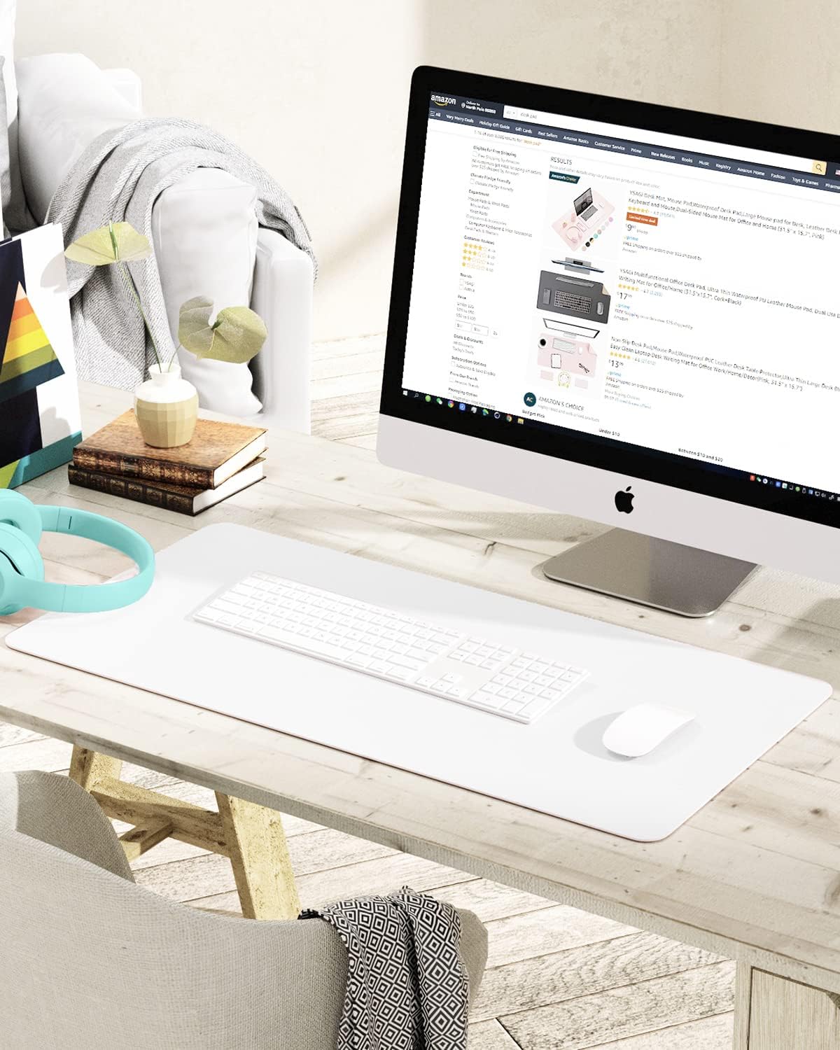YSAGi Non-Slip Leather Desk Pad, Waterproof Laptop Computer Desk Keyboard Mat, Table Protector Blotter Mat, Large Mouse Pad for Office/Work/Home/Decor(White, 31.5" x 15.7")