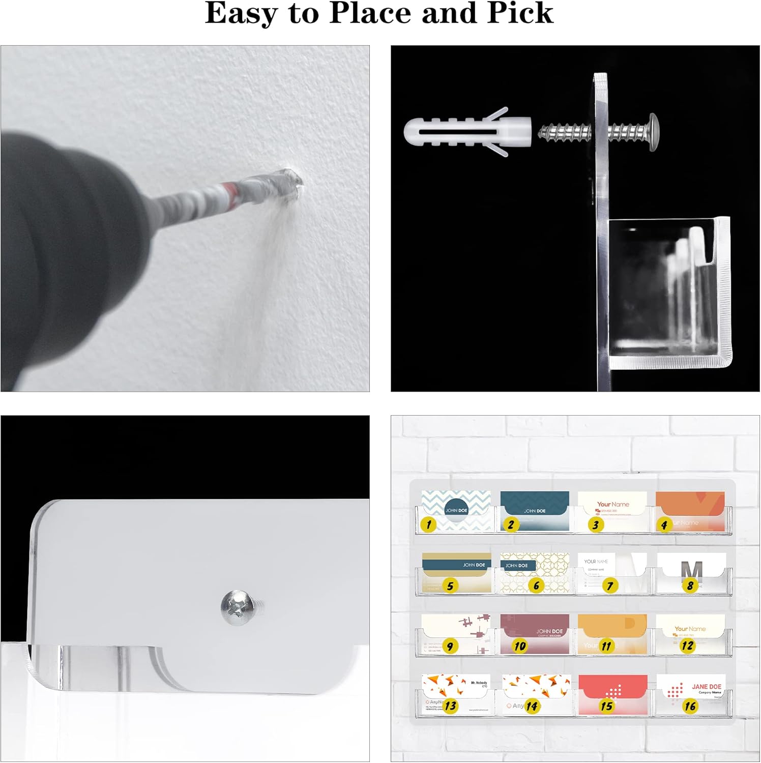 TURSTIN Business Card Holder Wall Mount Clear Sticker Display Marketing Holder Acrylic Business Card Stand Multi Pocket Rack Organizer Space Saver for Home Office (16 Pockets)