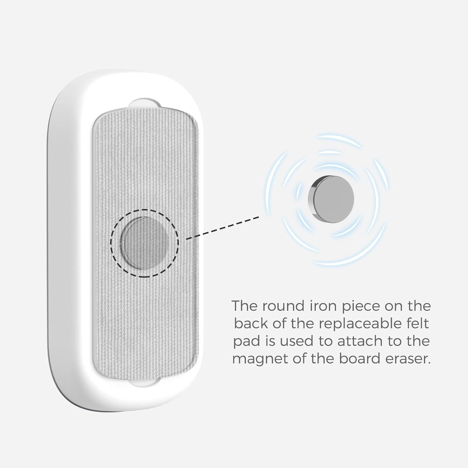 Click Clean 6-Pack Replaceable Felt Pads, Magnetic Whiteboard Eraser Felt Pads, Designed for Click Clean Replaceable Dry Erase Board Eraser, Intended for Classroom, Home and Office Use