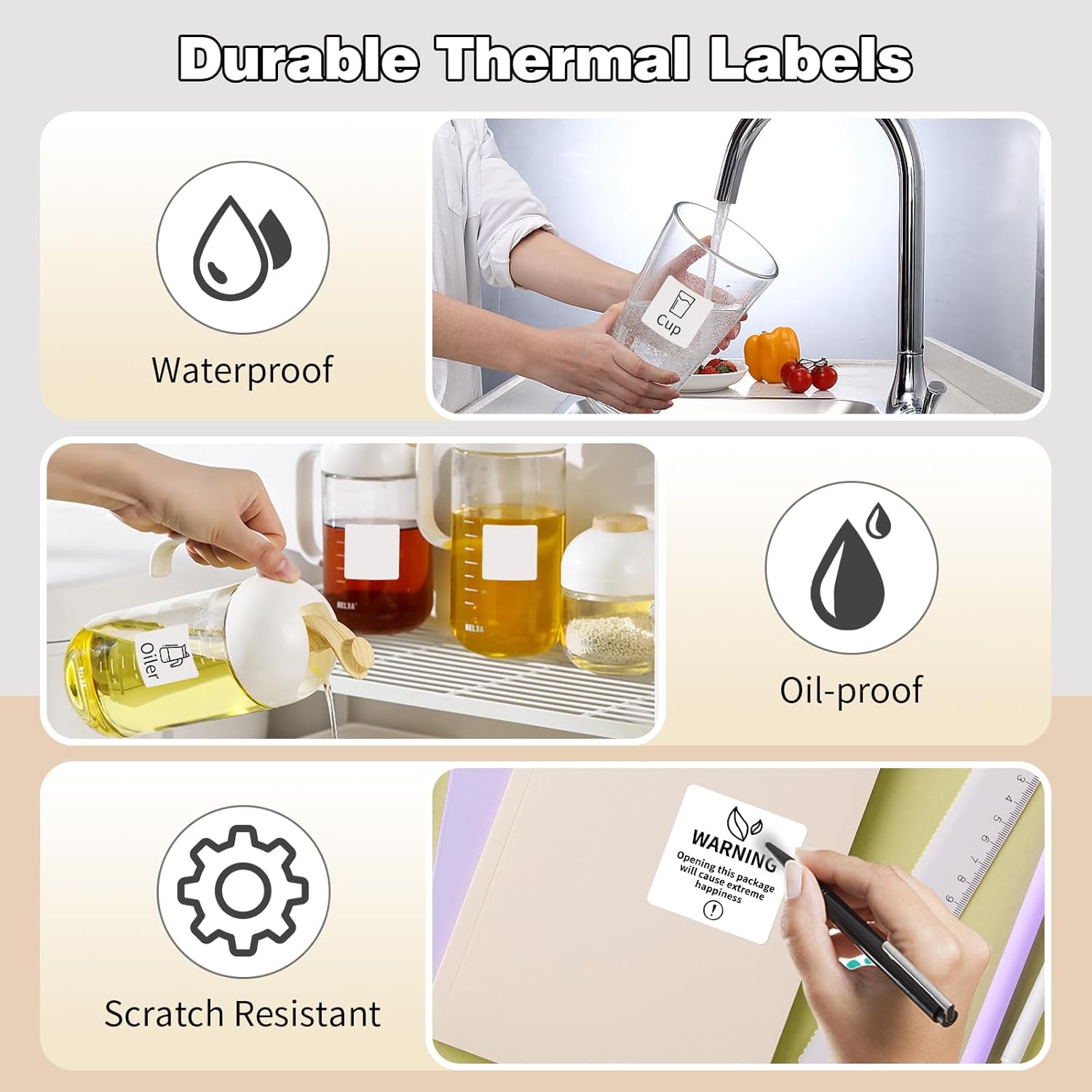 - Widely Usage : This thermal clear labels is waterproof and oil-proof,a good choice for small business supplies, storages boxes, barcodes, name and more