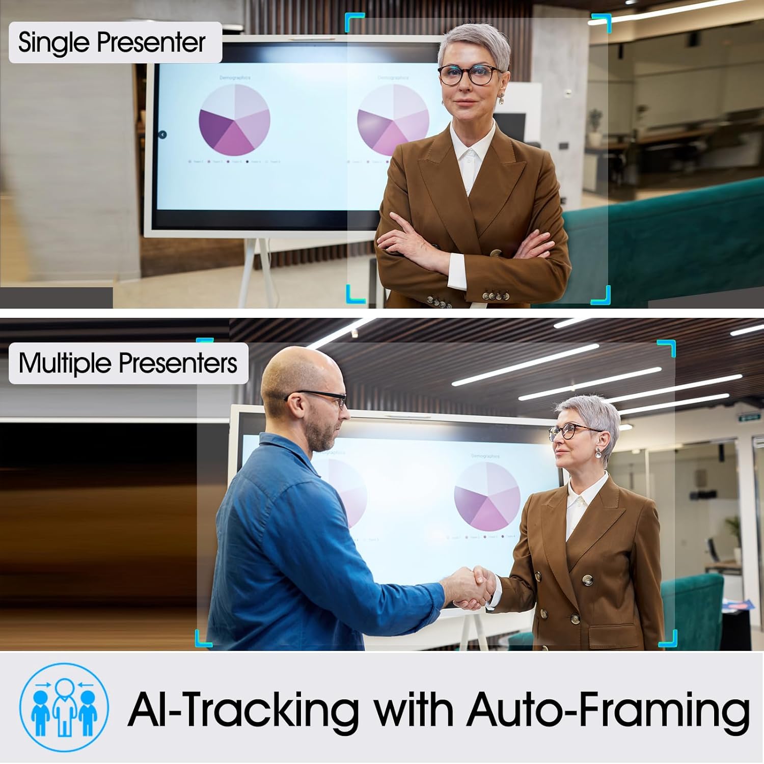 - 【AI Tracking and Advanced Framing Technology】Experience an immersive conference experience with the 913 AI King 4K webcam's advanced intelligent framing technology that automatically frames meetings based on the number of attendees, and Intelligent following technology that intelligently detects and tracks moving participants. Perfect for professional meetings and video presentations.