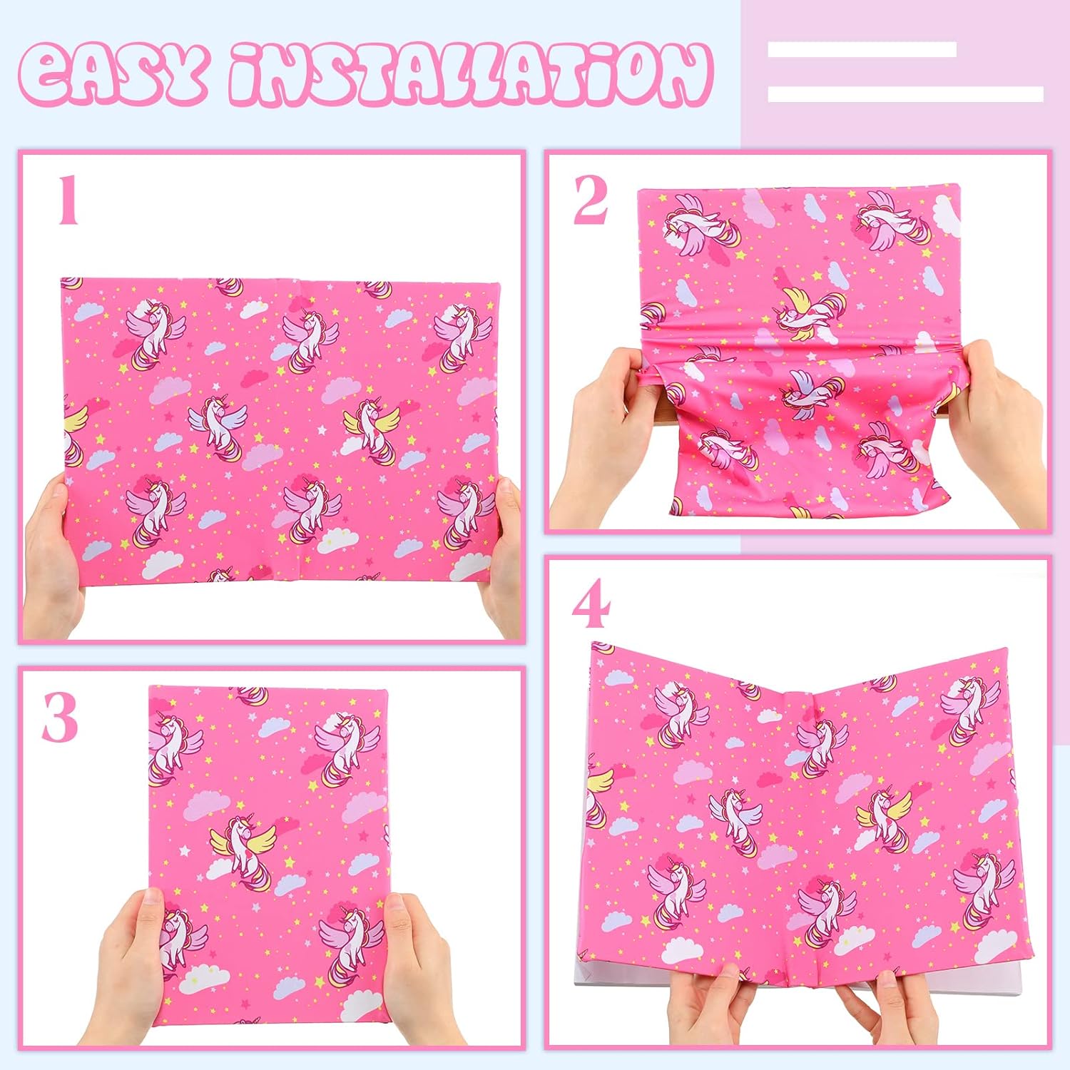 6 Pack Stretchable Book Cover Jumbo Fabric Book Covers Colorful Pattern Print Book Protector Washable Reusable Protective Textbook Cover for Hardcover Textbooks up to 9 x 11 Inch (Unicorn Pattern)